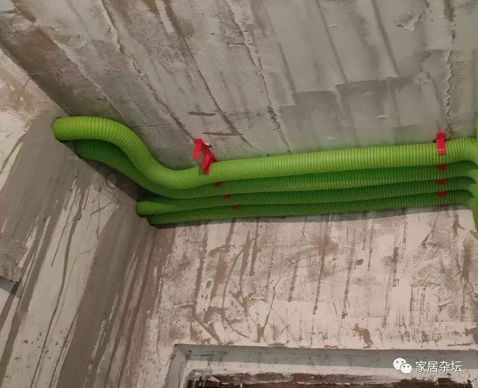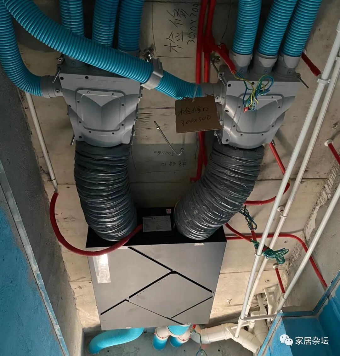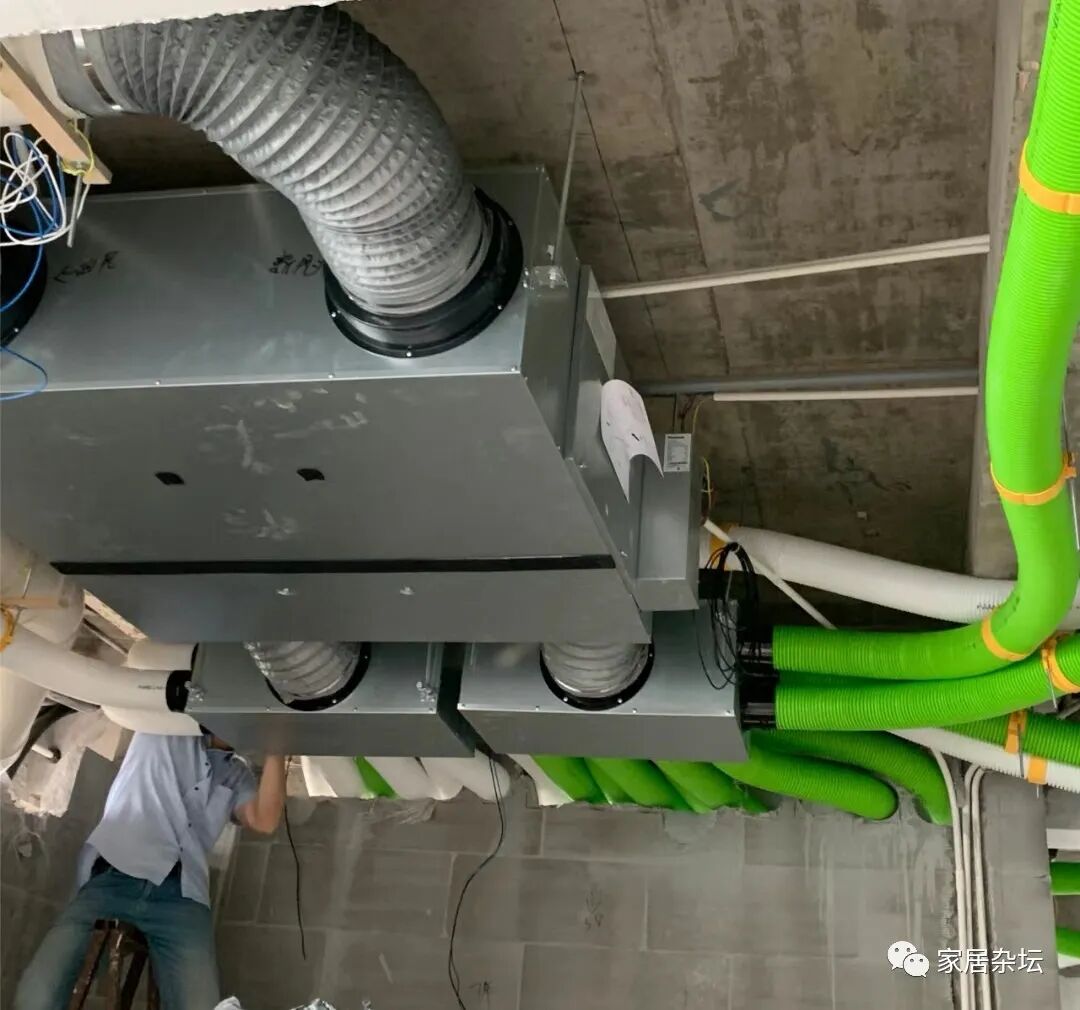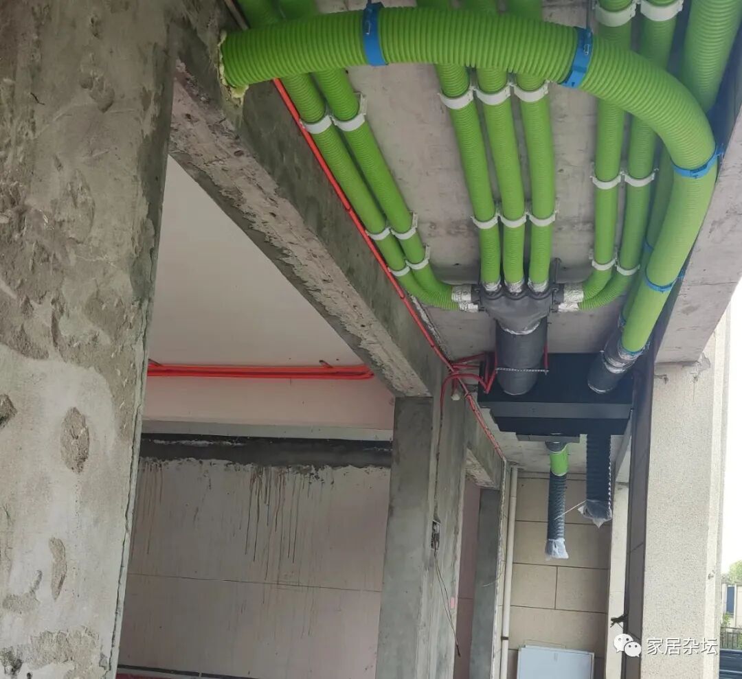 ①、建造楼房的时候,提前布置好中央空调管线的走向以及新风机管线的走向。