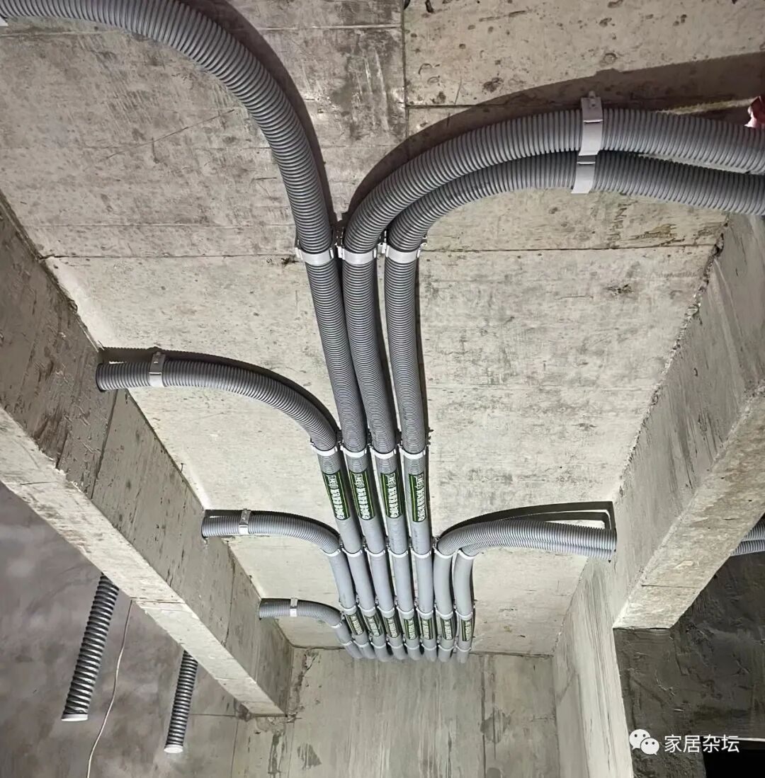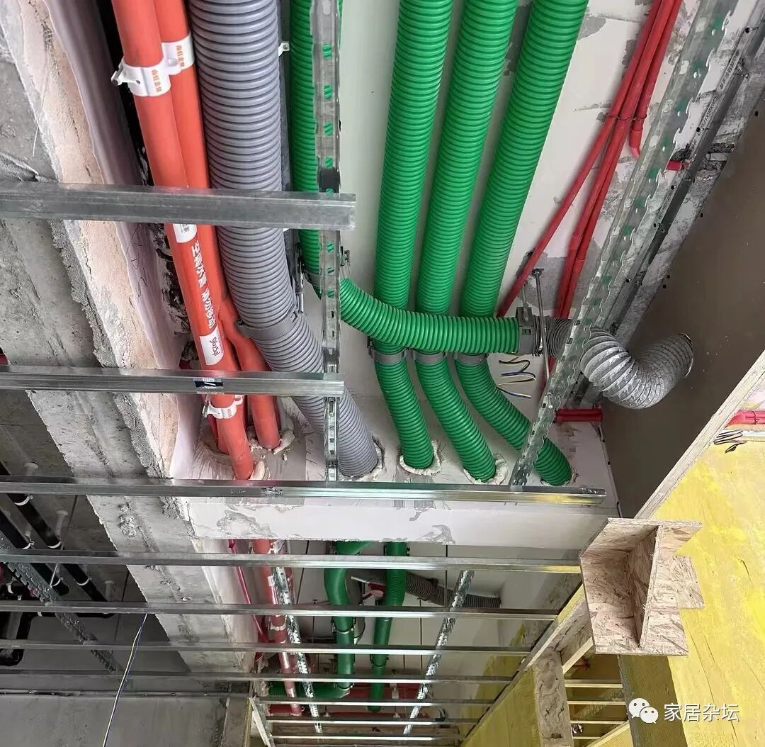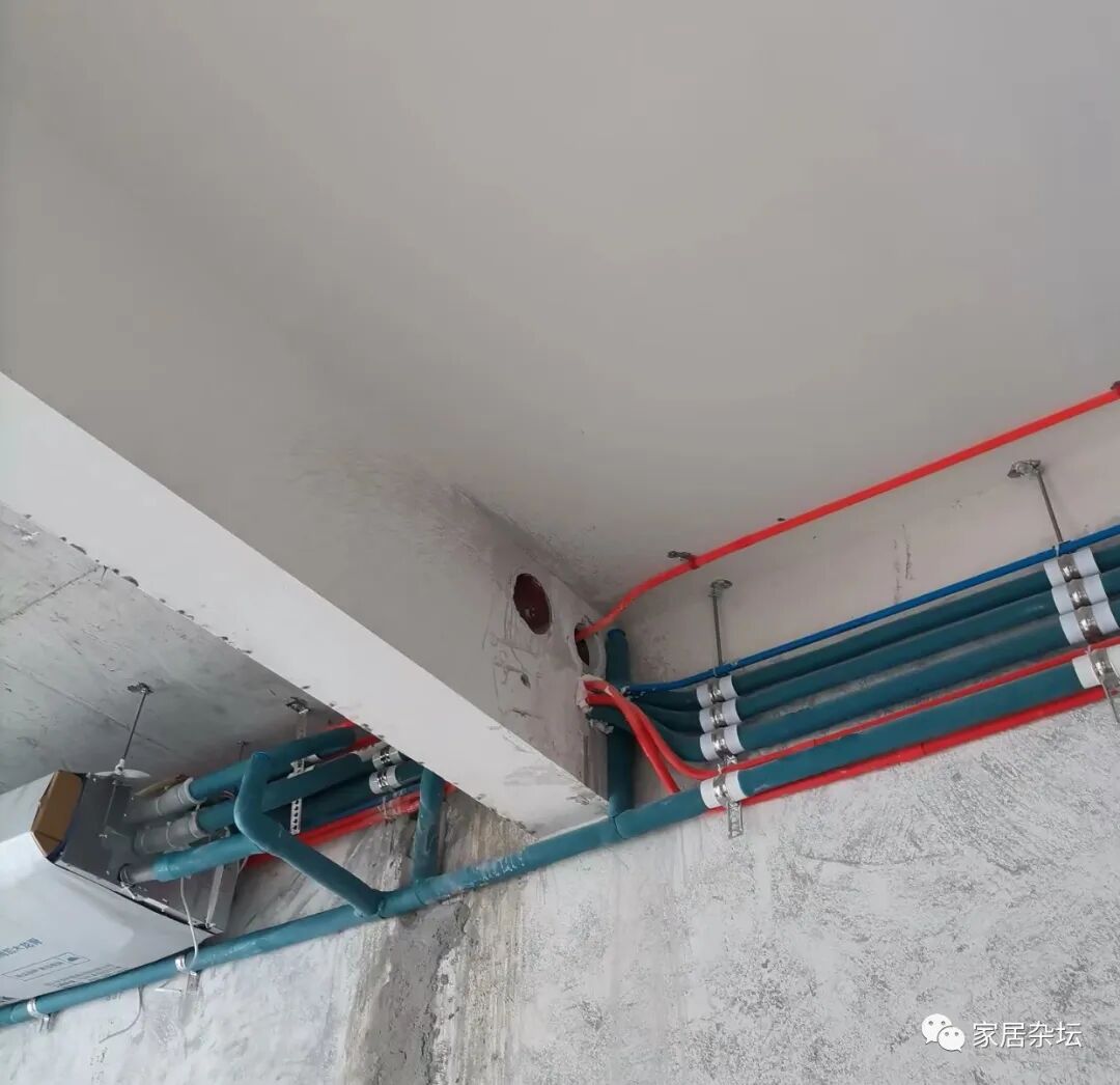 ①、建造楼房的时候,提前布置好中央空调管线的走向以及新风机管线的走向。