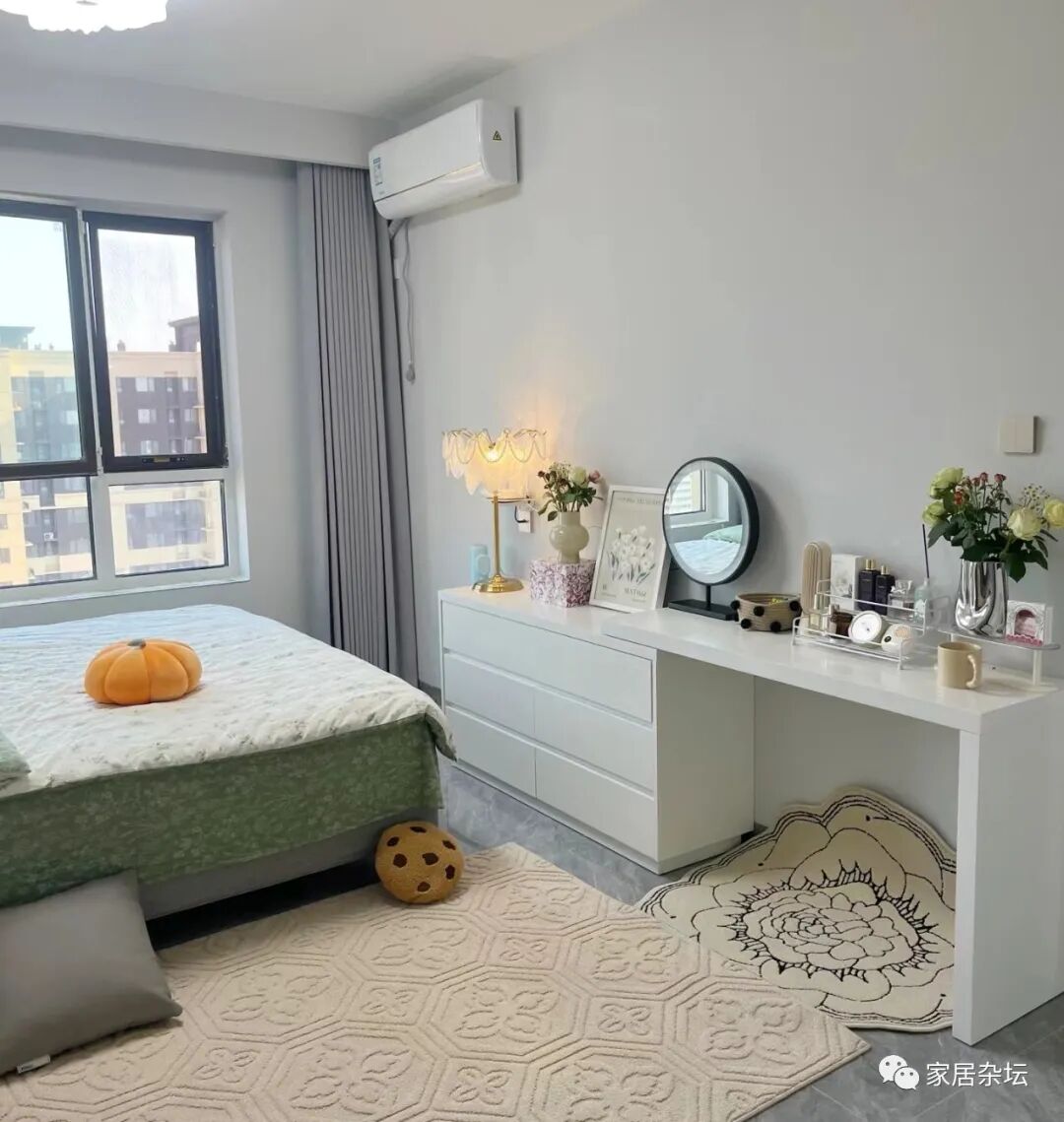 而个人是不建议大家在卧室除了床底下以外的区域全铺地毯的。