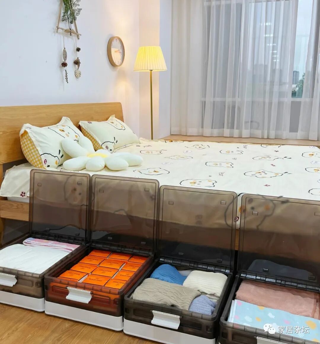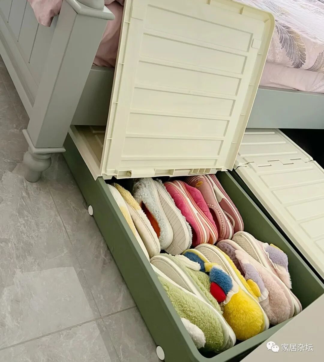 的确,把鞋都放在床底下,可以有效的提高家里的收纳。
