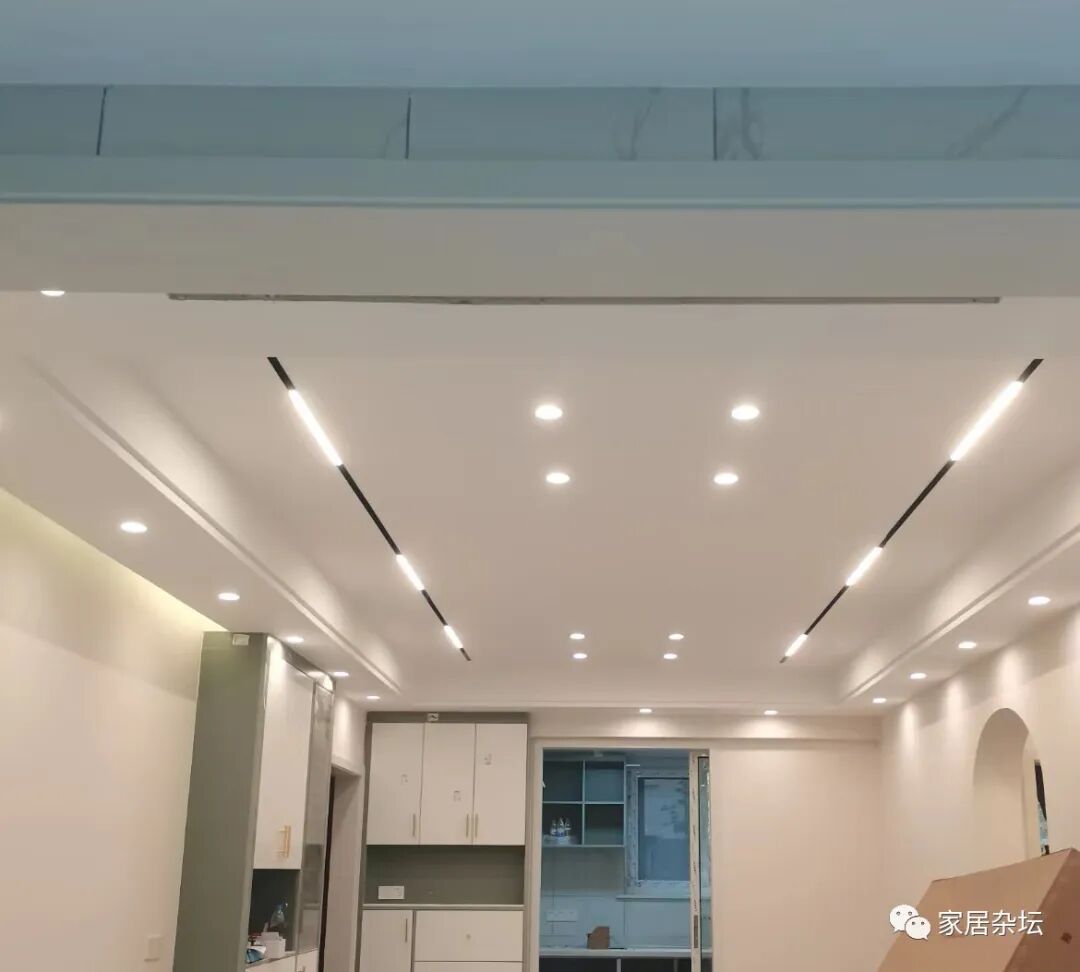 ③、布线更加复杂。因为每个灯都要有电源线,如果我们选择无主灯,那么全屋的顶板上,你会发现有很多的线管,增加很多电线。