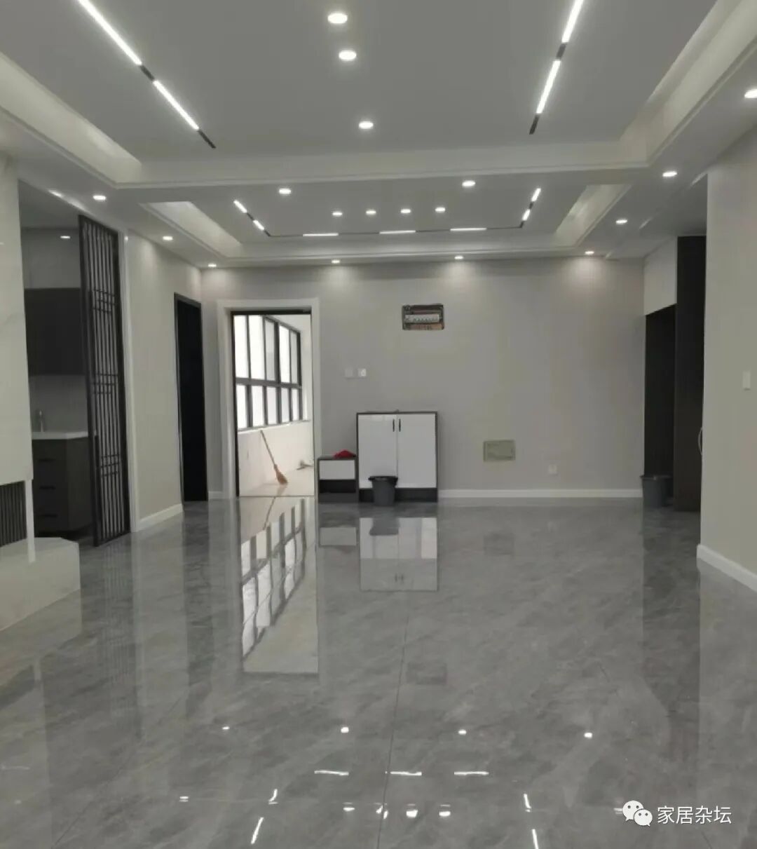 ②、地面上星光点点,让人看着头晕。其实这种情况也是选择了亮面砖,配上了无主灯。在亮面砖反射的情况下,就看到很多的光点在地面上,我们看着很不舒服。