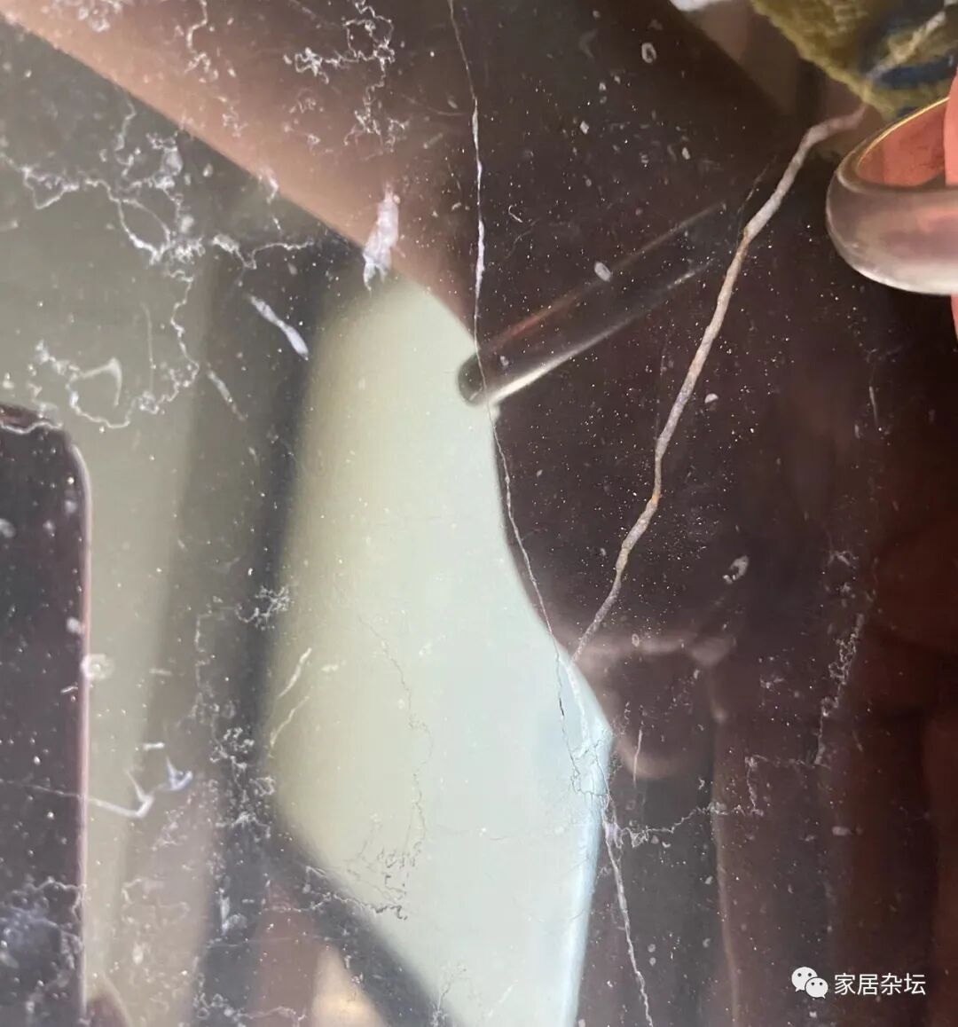 ①、台面的开裂了。大理石是不耐热的,如果我们把刚做好的锅放在台面上,发现大理石可能就裂了。