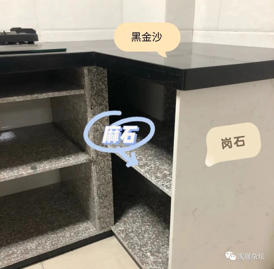 厨房装修中,第三个乱七八糟的设计,就是使用了大理石台面。