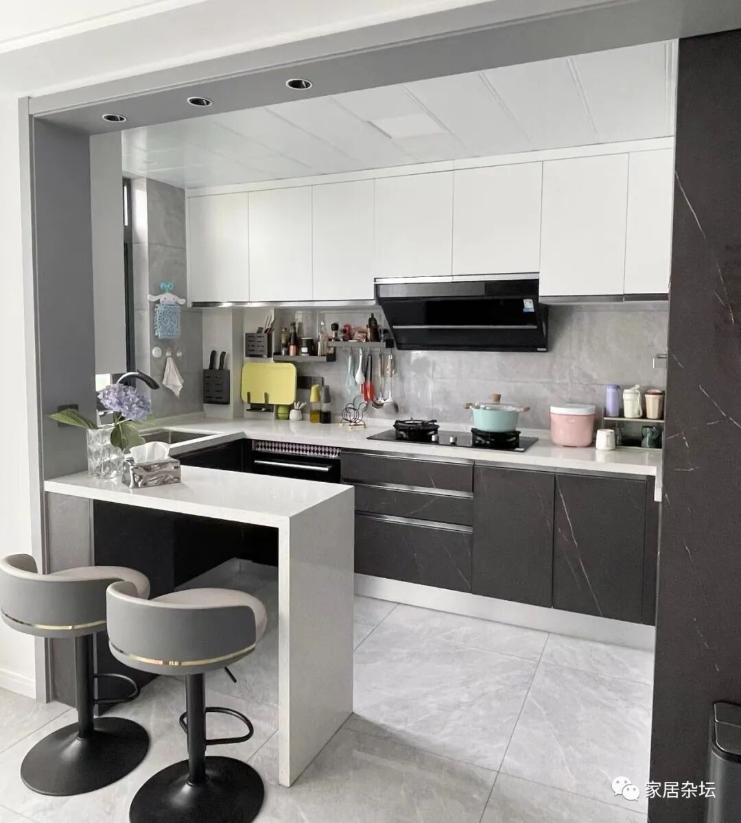 厨房装修中,第六个乱七八糟的设计,就是设计装修了吧台。