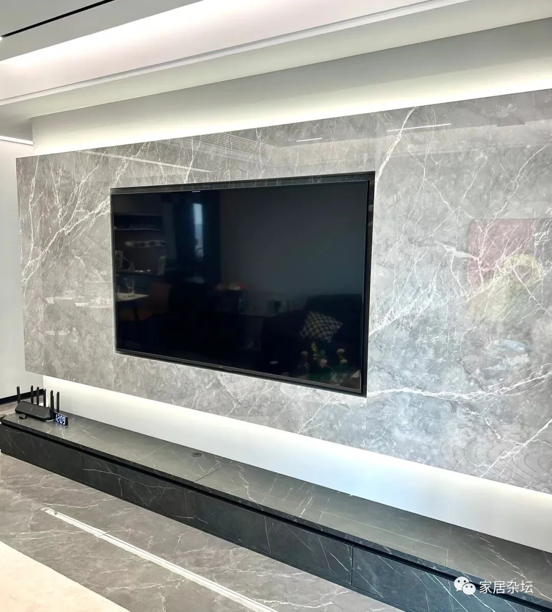所以,使用大理石做电视背景墙,确实很惊艳,拍照非常漂亮。被很多人吹捧,吹捧成网红装修。