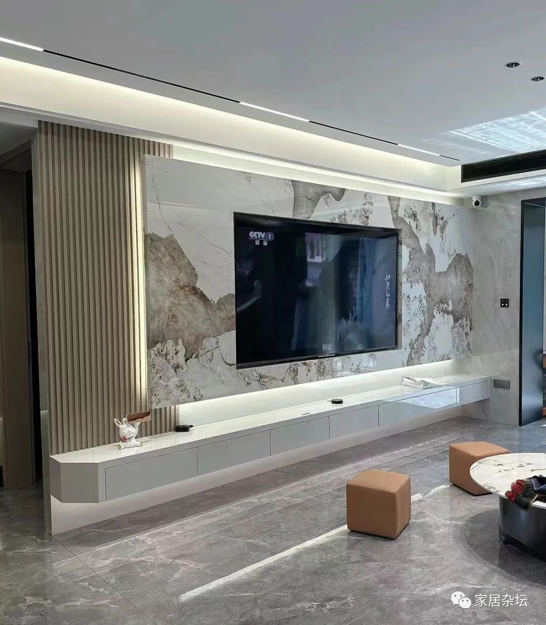家装中,第二种比较容易过时的网红装修,就是高端的大理石电视背景墙。