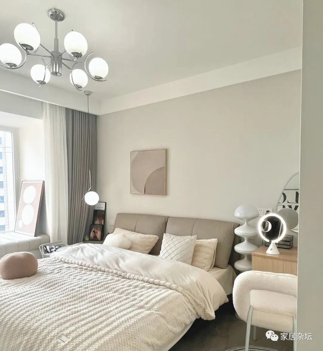 ②、对于一些有一定追求的朋友,可以选择浅灰色的墙面。例如现在流行的杏子灰,效果确实不错,而且与家具软装也能更好的搭配。