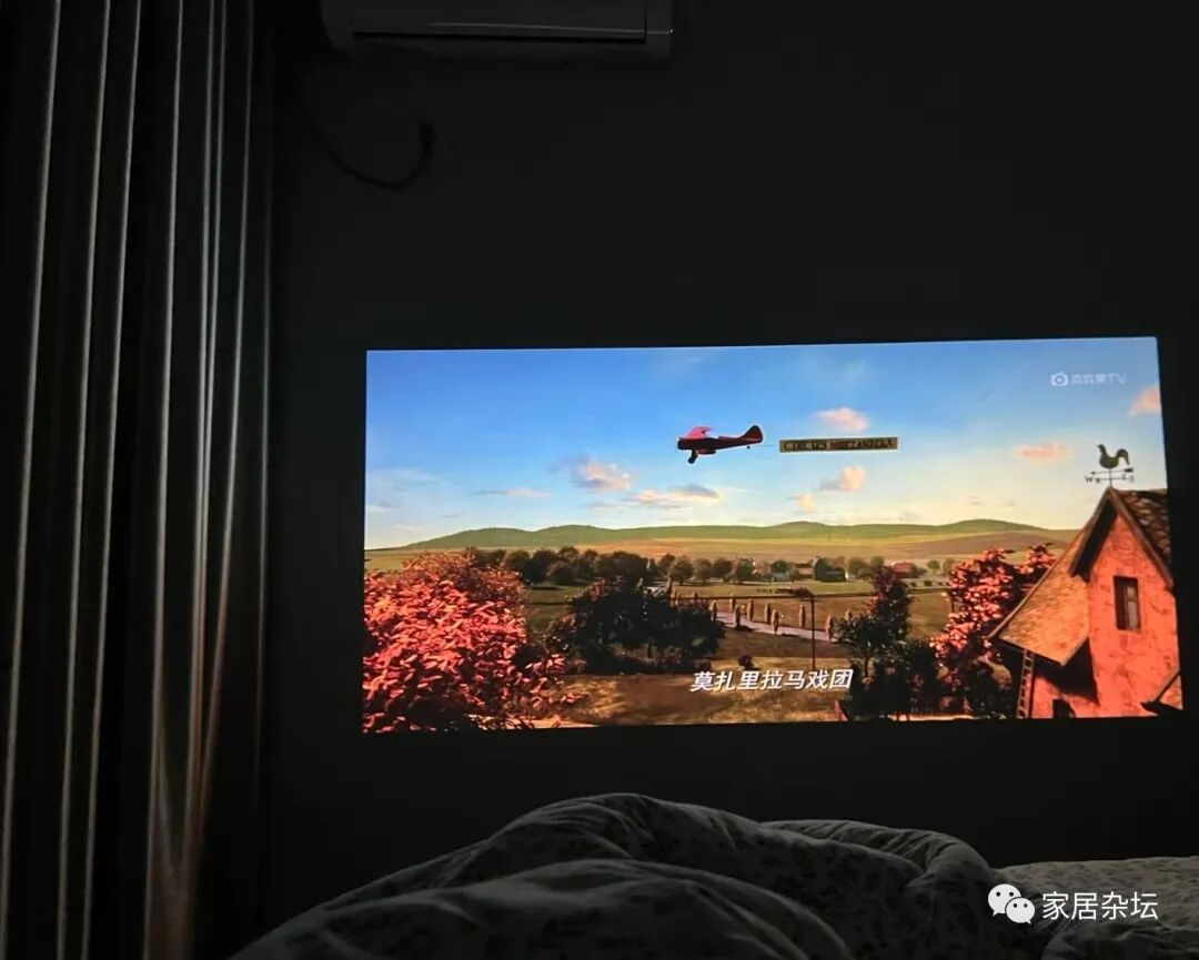 ②、晚上观看还要关灯。如果主灯开着,同样发现投影仪的画面很模糊,让我总感觉看不清楚。