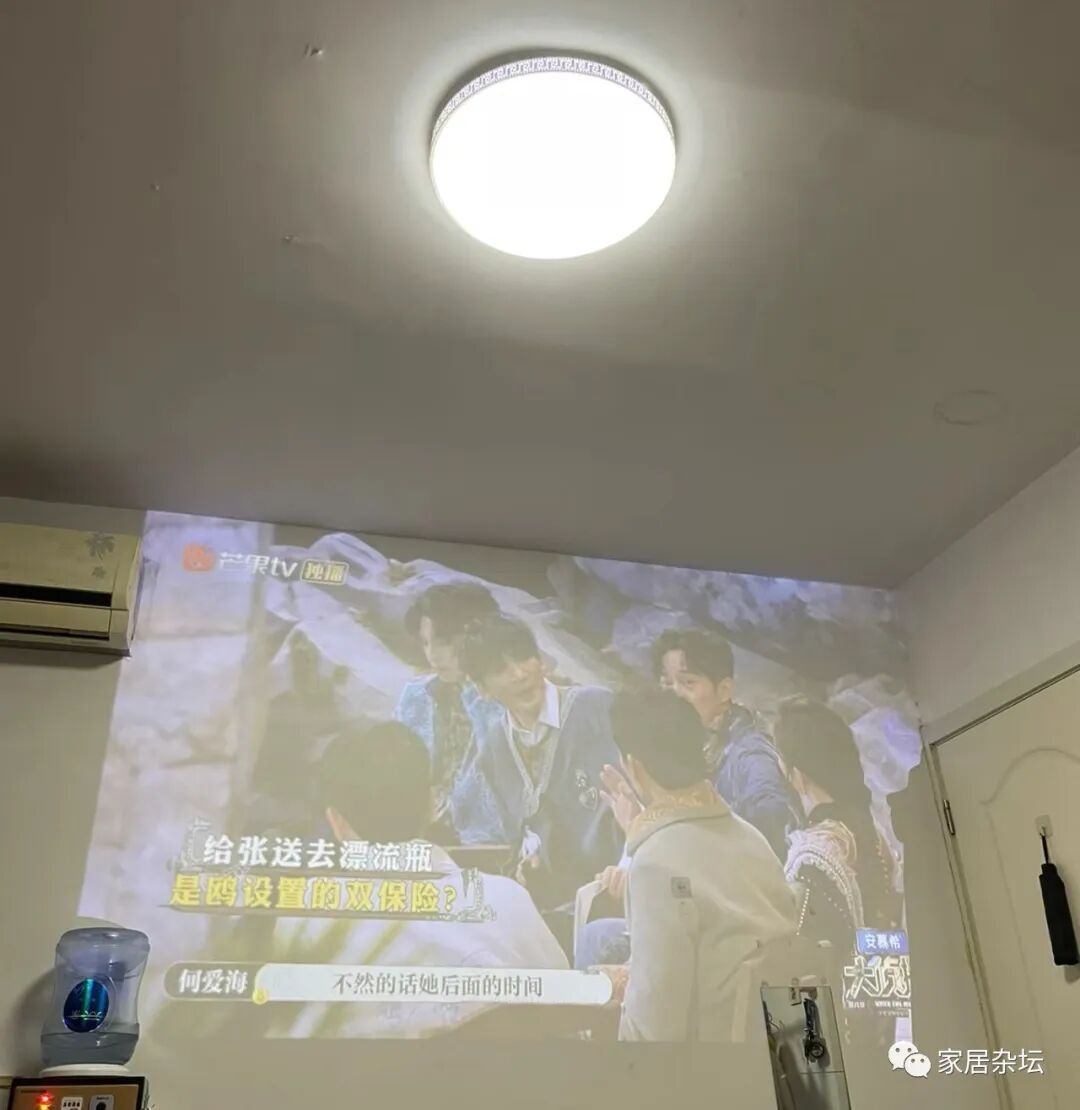 ②、晚上观看投影仪,如果家里的灯,特别是客厅的灯都亮着,你会发现效果同样也很差。所以,投影仪对客厅灯又有很高的要求。