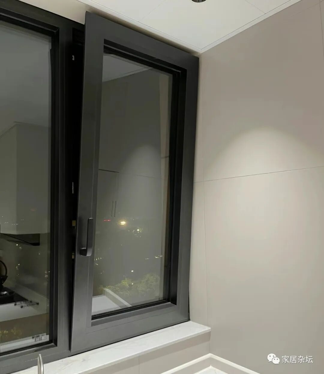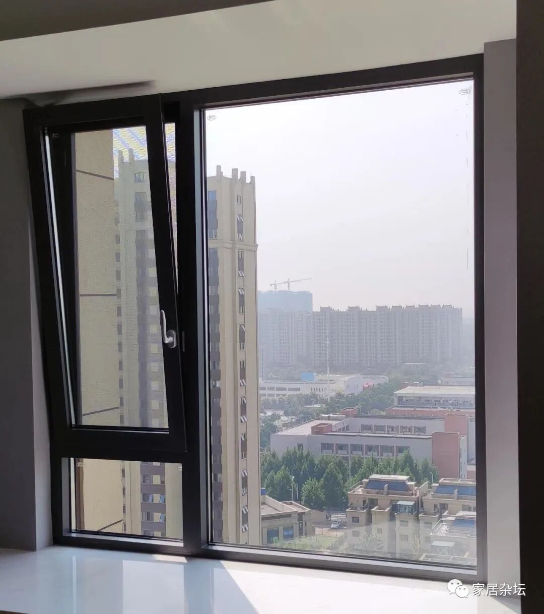 ③、内倒窗其实本身有一个缺点,就是通风面积小。打开以后,没有平开窗或者推拉窗大,所以如果考虑用窗户通风的话,这点大家一定要注意。