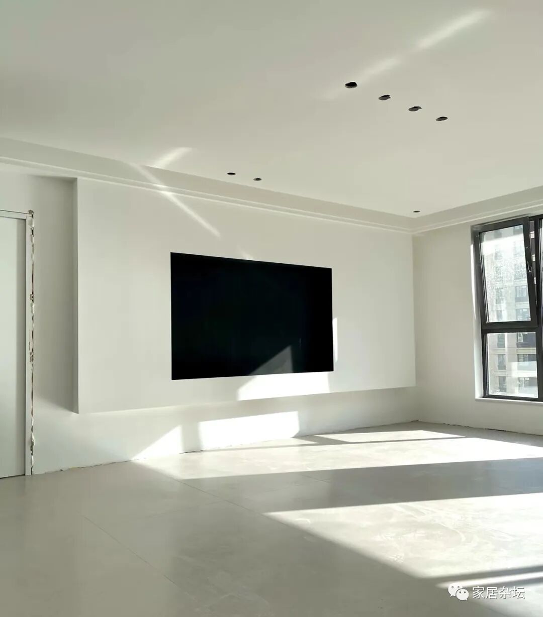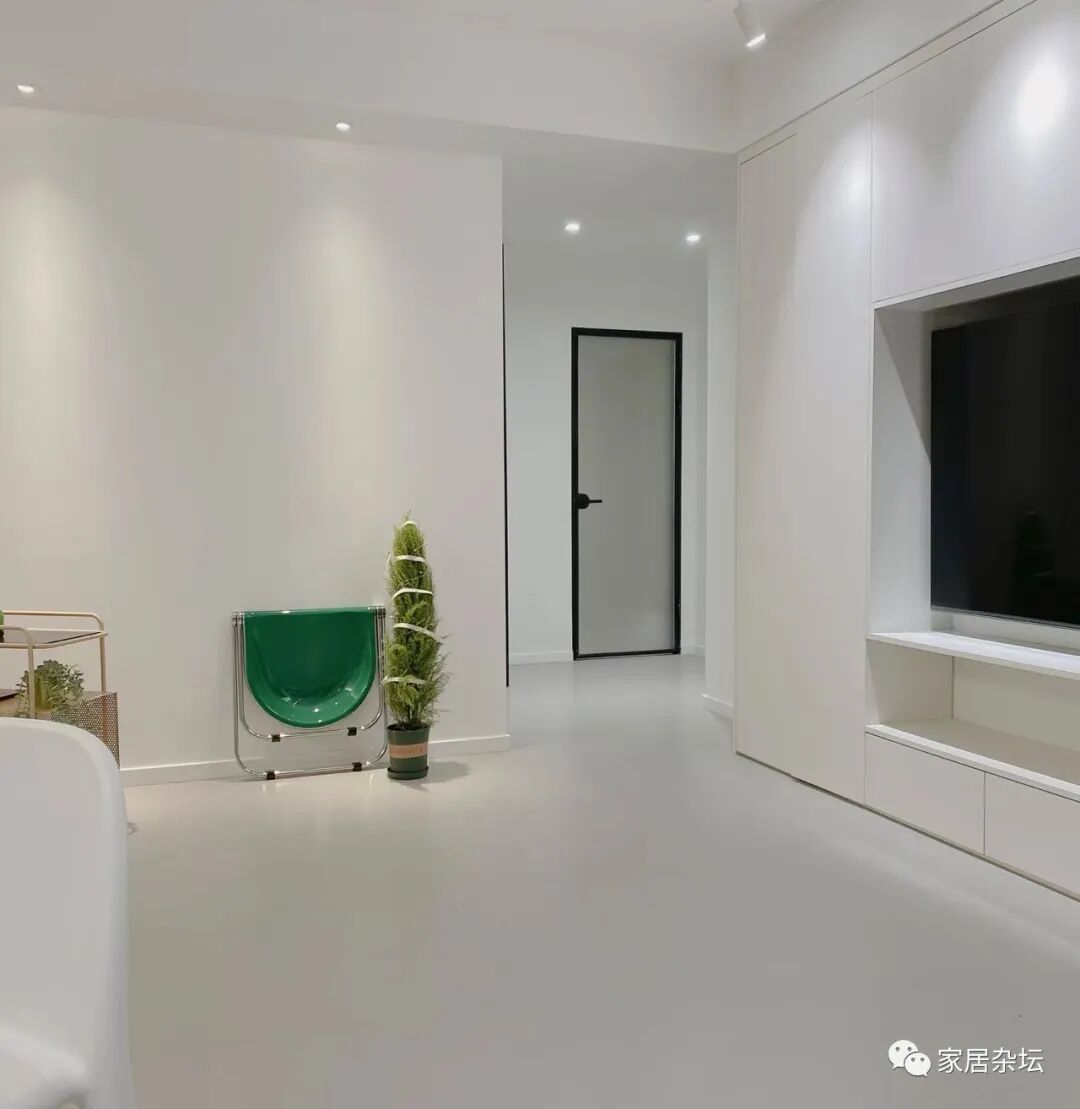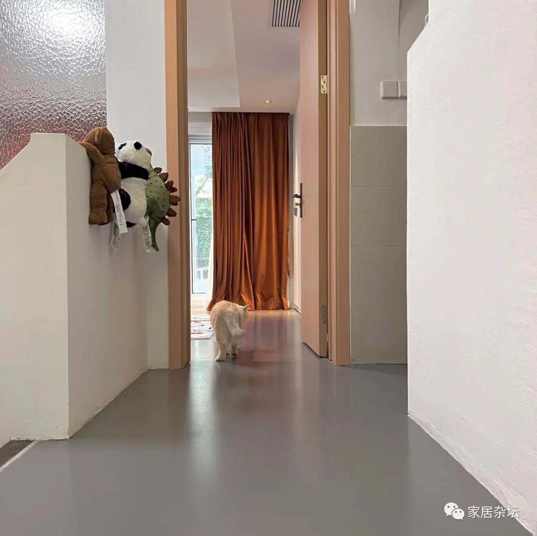 所以,我们从入户门向里面看去,就发现自流平是一个整体,效果确实更好。