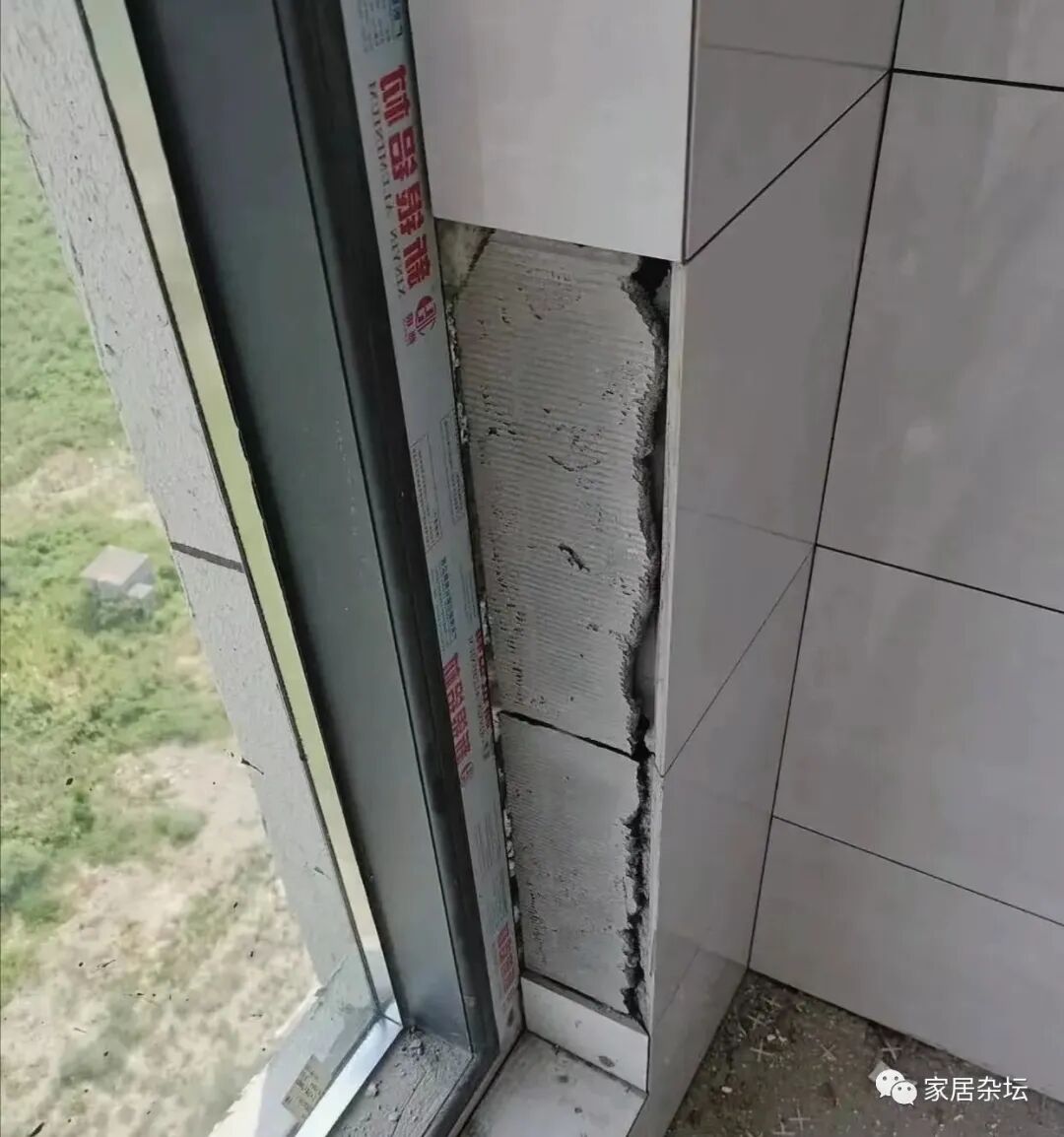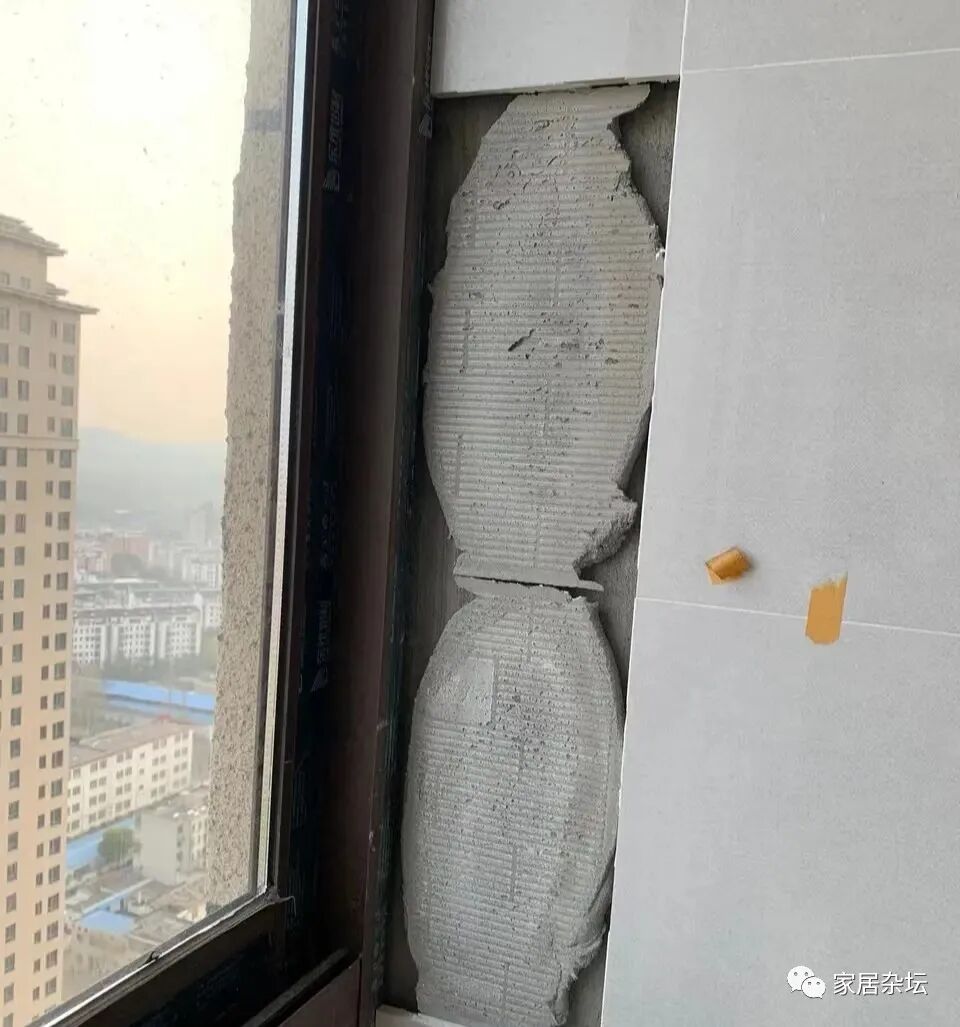 ①、窗台的位置粘贴瓷砖,粘贴的不牢固。因为窗台要保证窗台的高度,还有侧面的平整度,最后导致粘贴的不实。