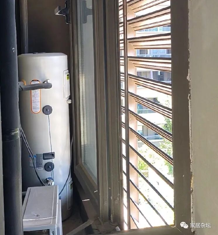 空气能热水器,在室外通过冷媒管道的吸收和散热与热水交换热量,实现加热热水。