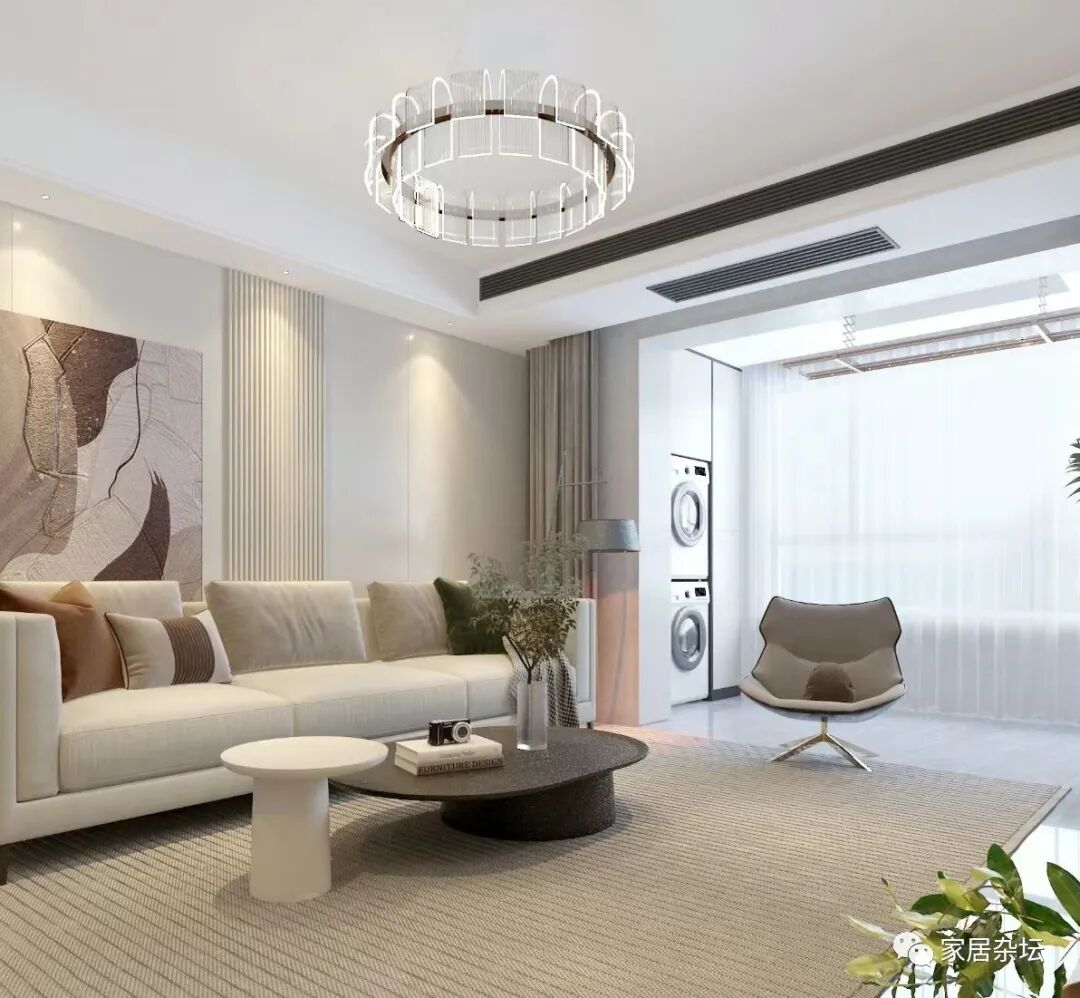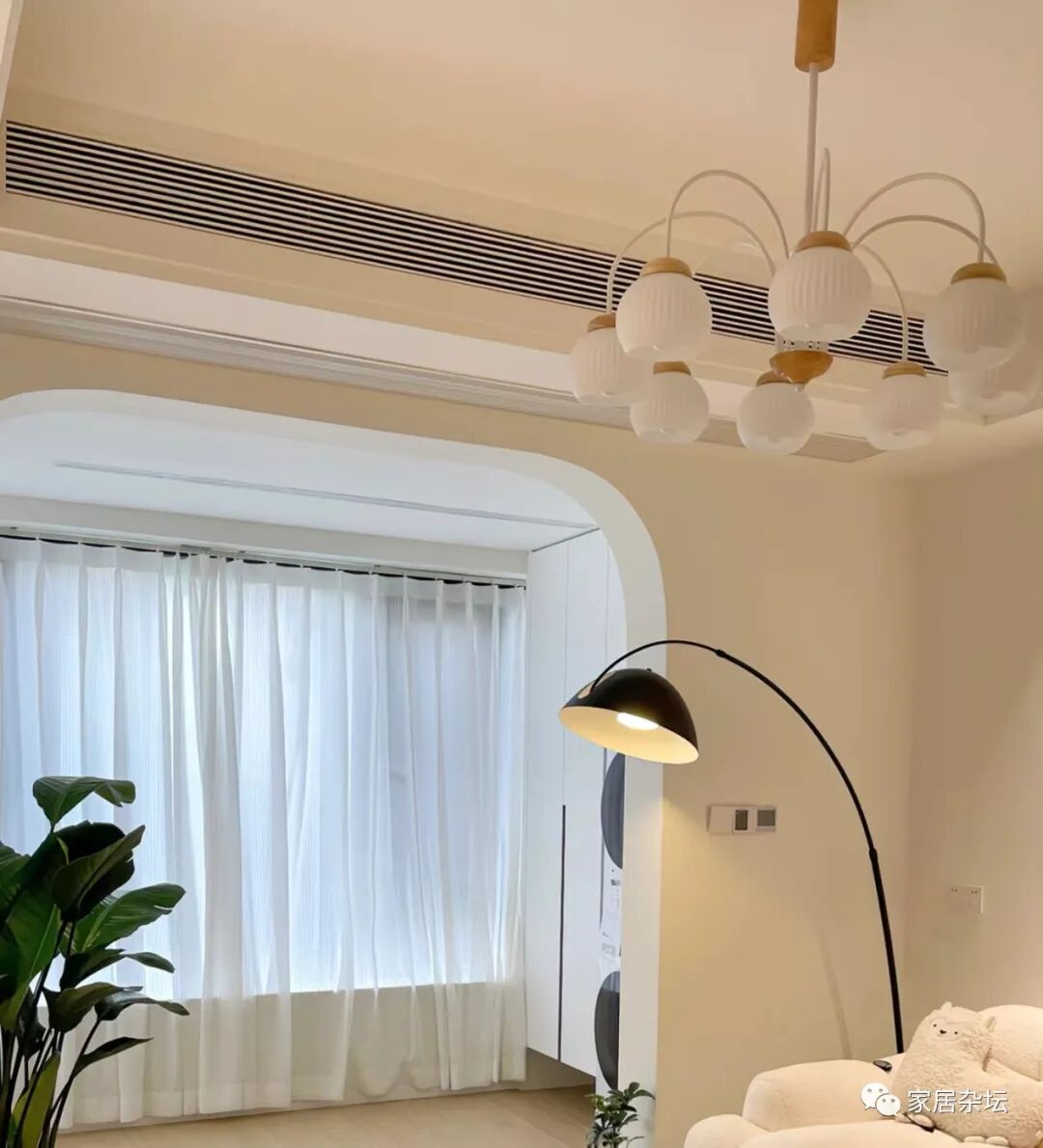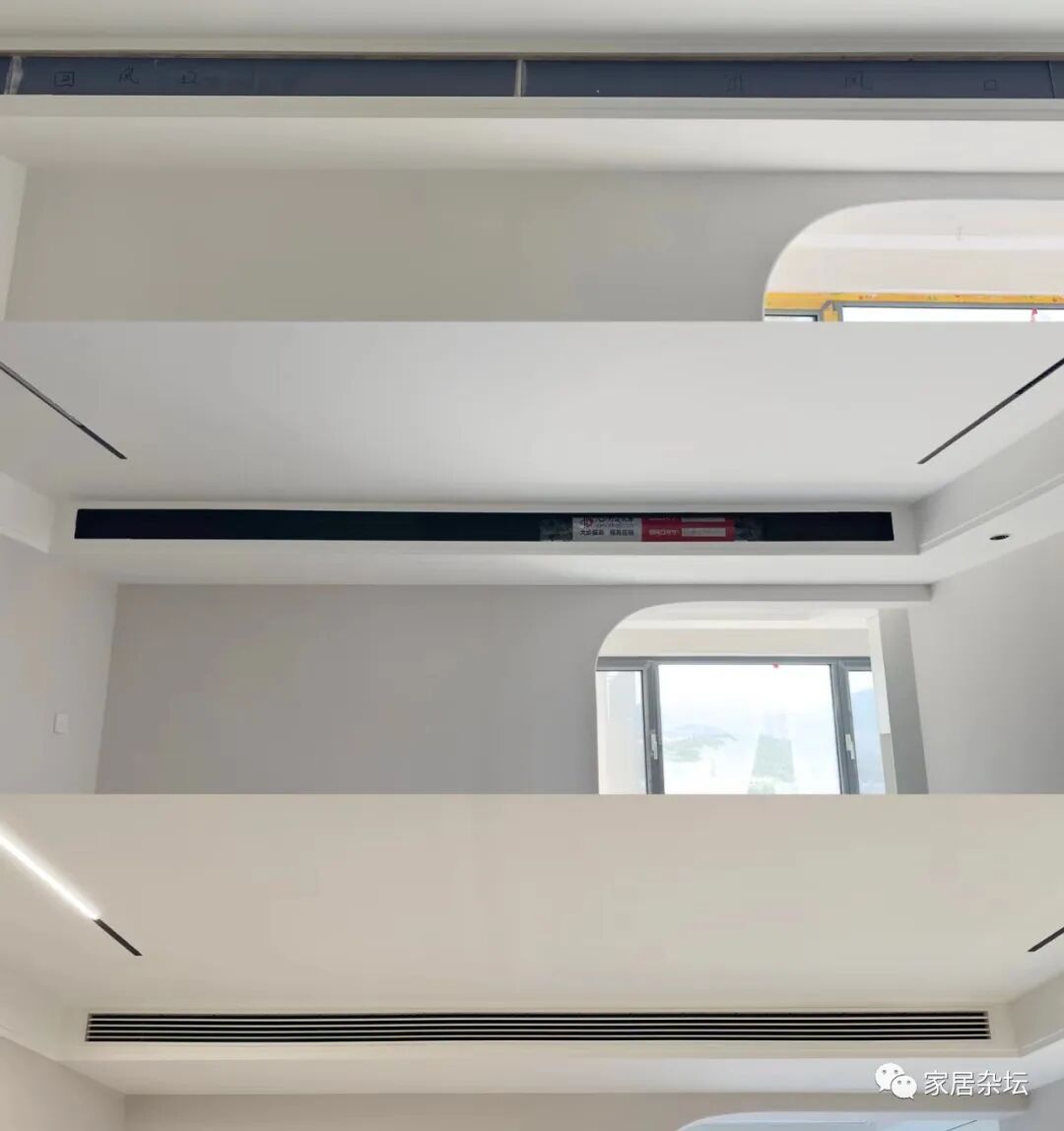 ①、装修效果是目前比较流行的装修效果。在每个房间里,只能看见一个出风口,与室内的吊顶和柜子都很搭配。
