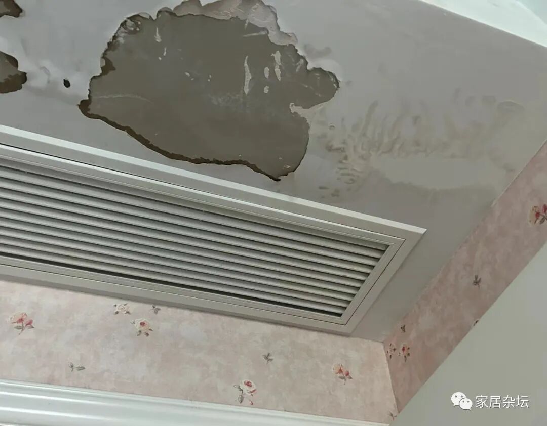 ①、风管机的漏水。这个漏水主要是排水管连接处不严密的漏水。估计很多家里可能没遇到过。漏水直接把吊顶都泡坏了,不得给拆除以后维修。
