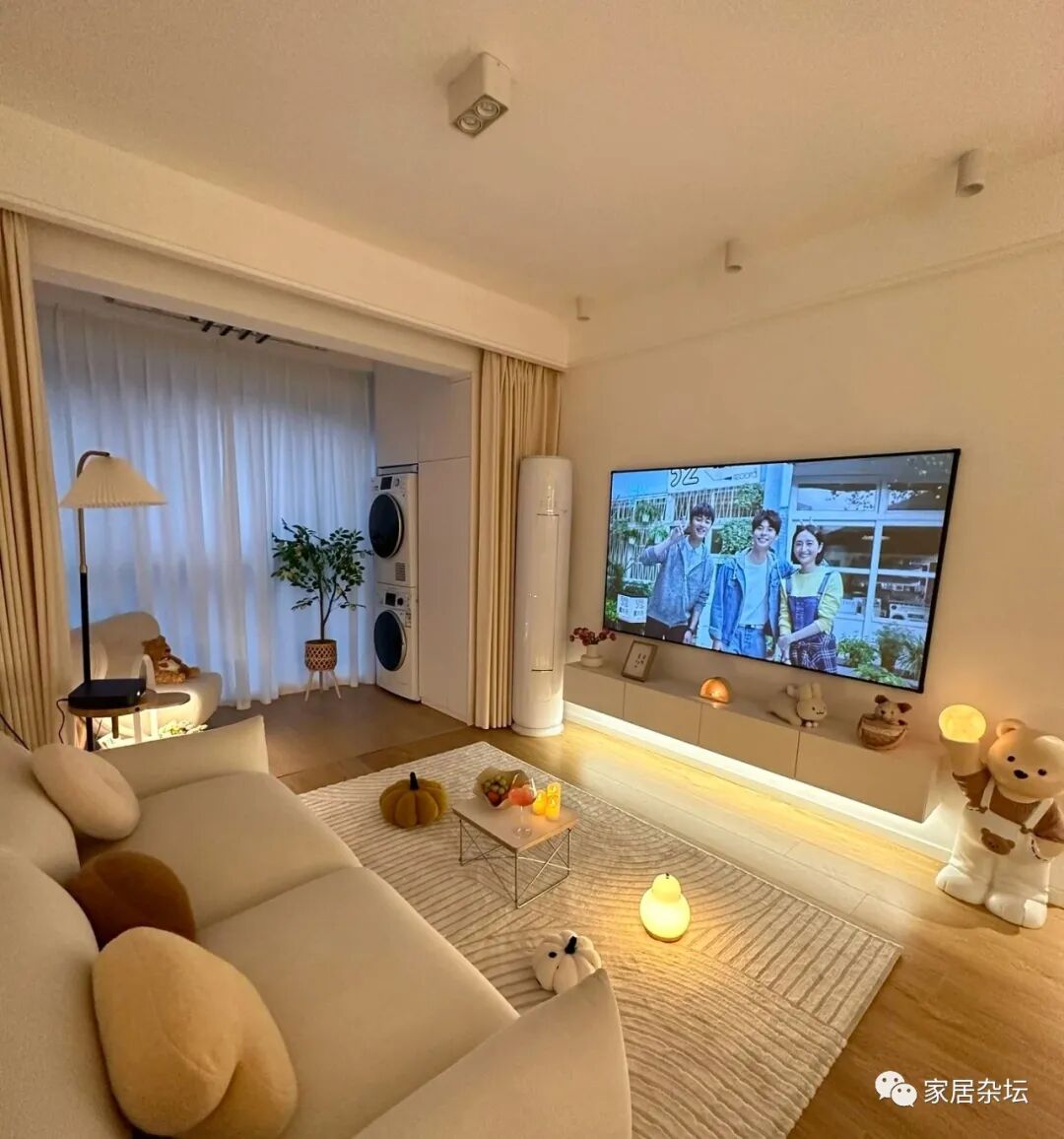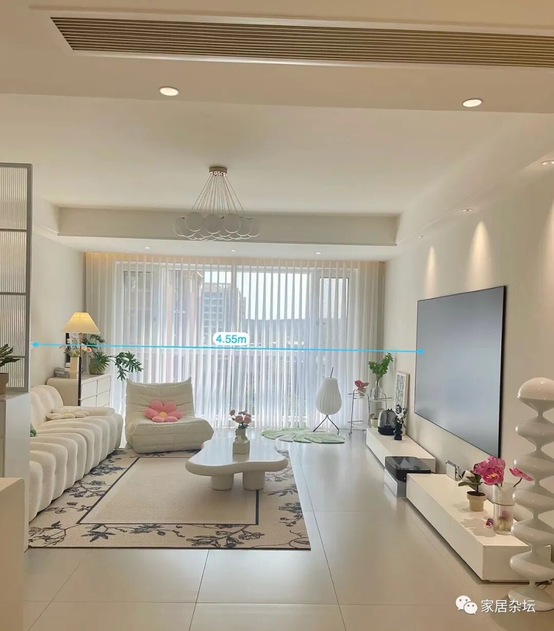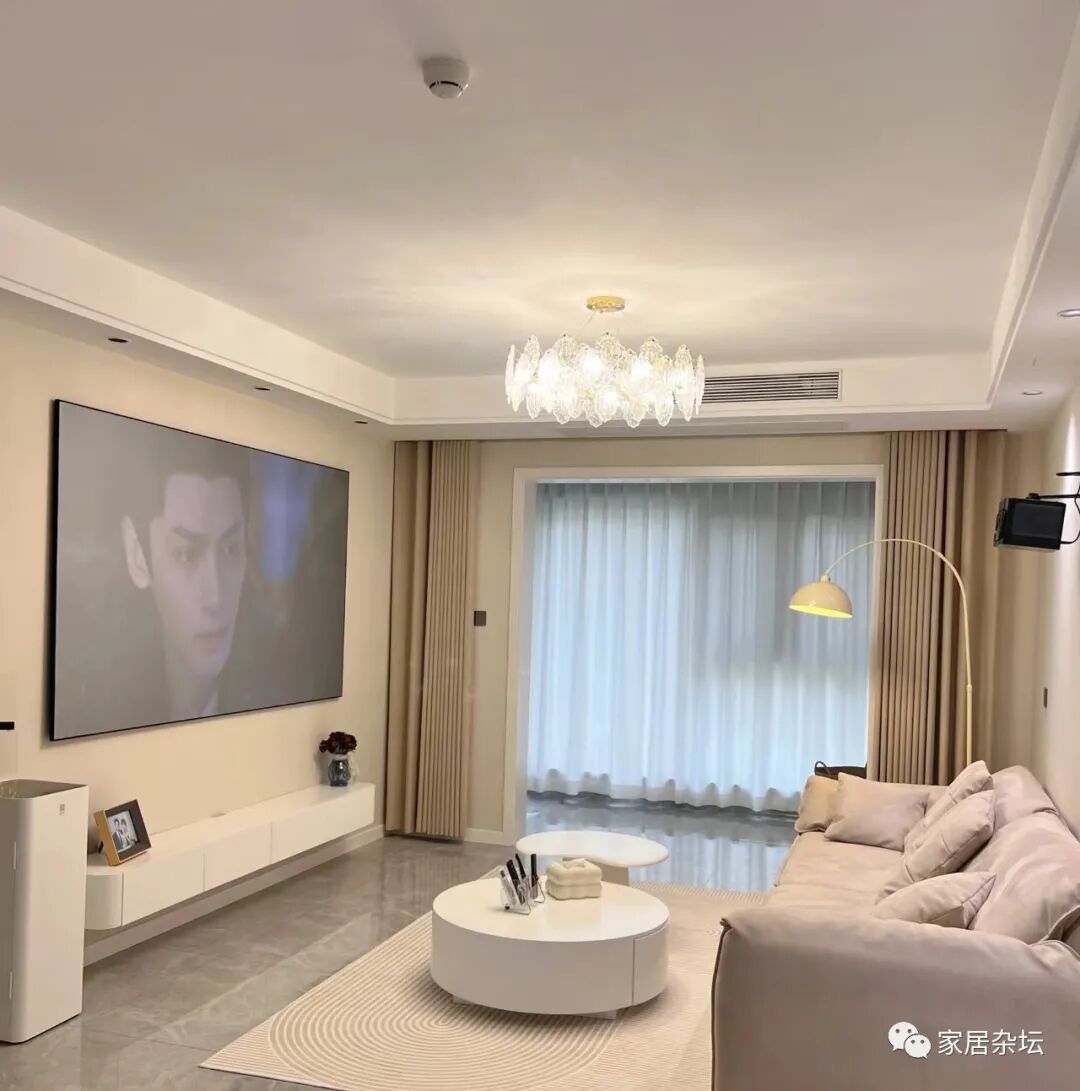 ③、客厅安装投影,节省了复杂的电视背景墙。即使投影仪费用较多,也是更省钱,而且你会发现这种设计方法,会更耐看。