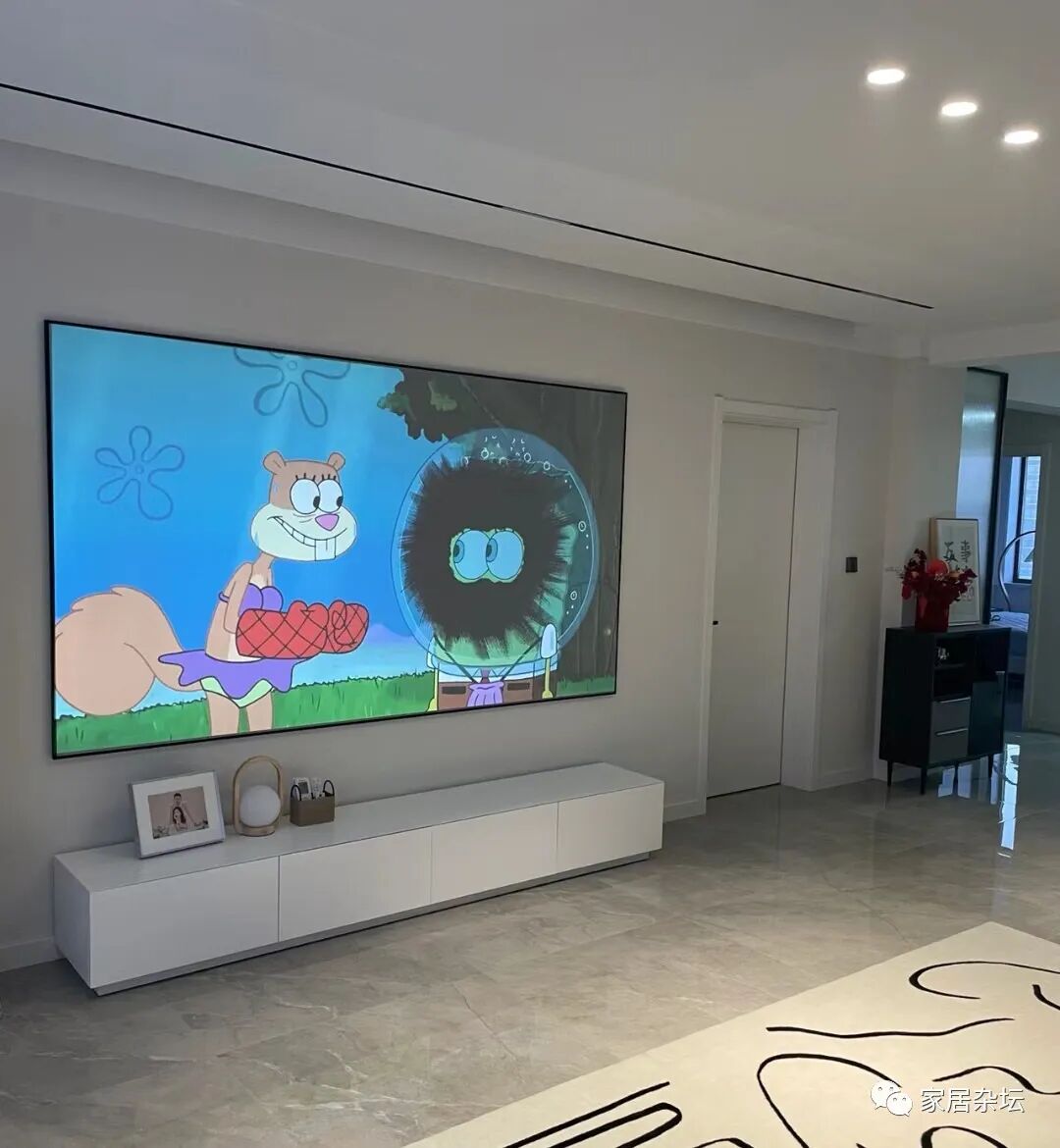 如果大家去了解过现阶段各种装修效果,也会发现电视墙的区域,如果装投影,确实显得很高端。