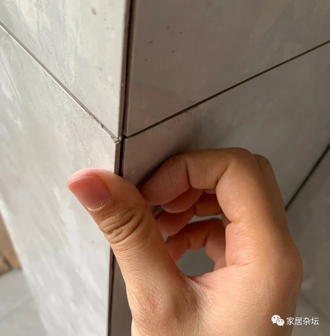 很多朋友所吐槽的,海棠角的翻车,一般就是缝隙不不对,缝隙大小不一,出现崩边,还有就是瓷砖空鼓开裂等等。