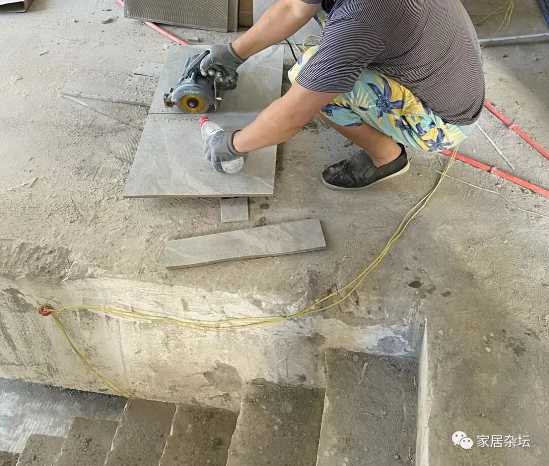 ①、瓷砖海棠角的加工,尽量避免现场加工。也就是,在我们家里,瓦工师傅使用手动的切割工具切割瓷砖。如果加工海棠角使用这种做法,就尽量不要做了。