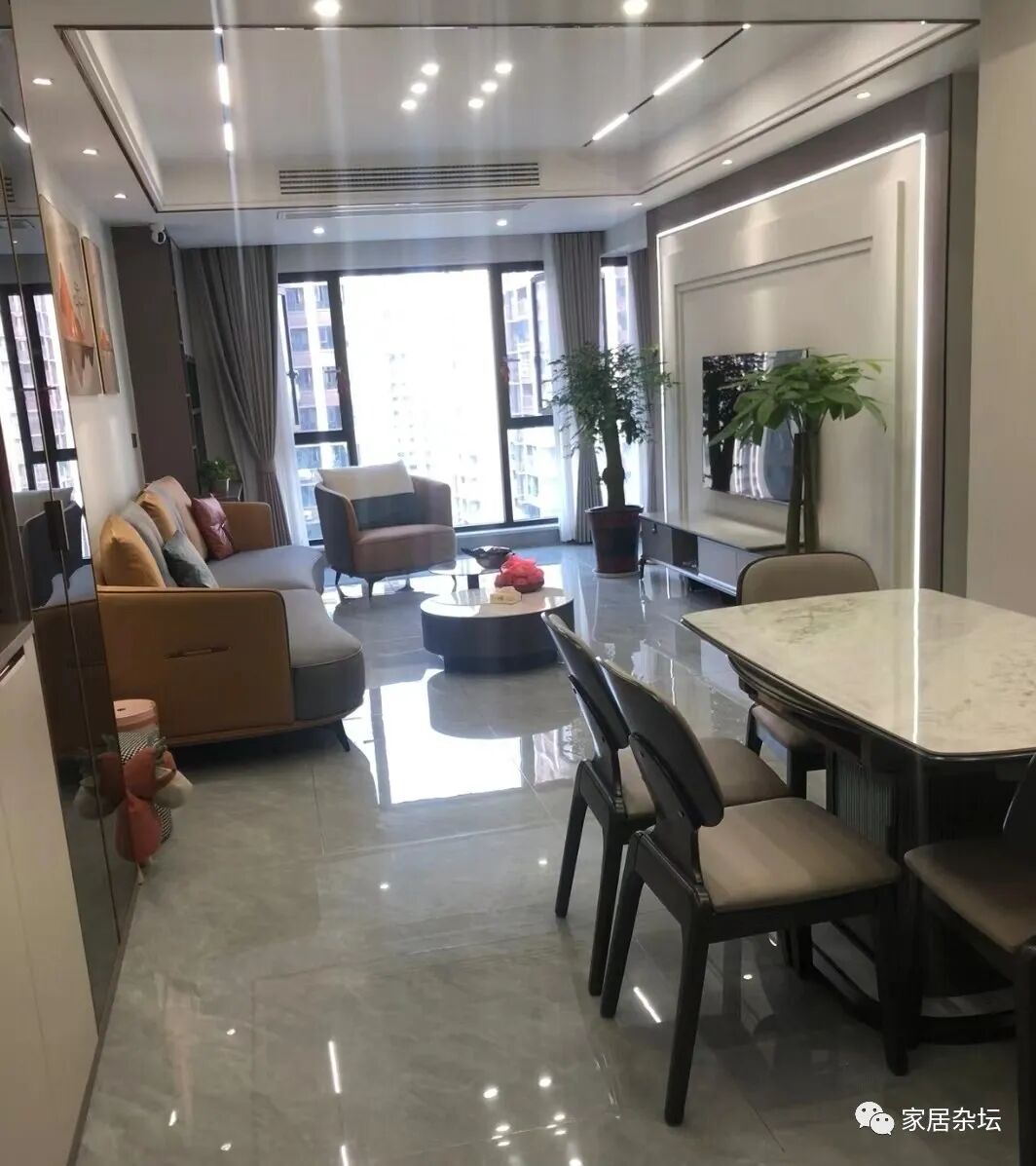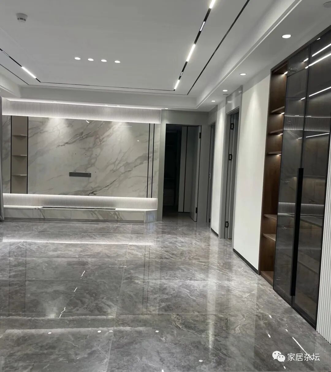 这里有一个典型的情况,就是无主灯配上了亮面砖。