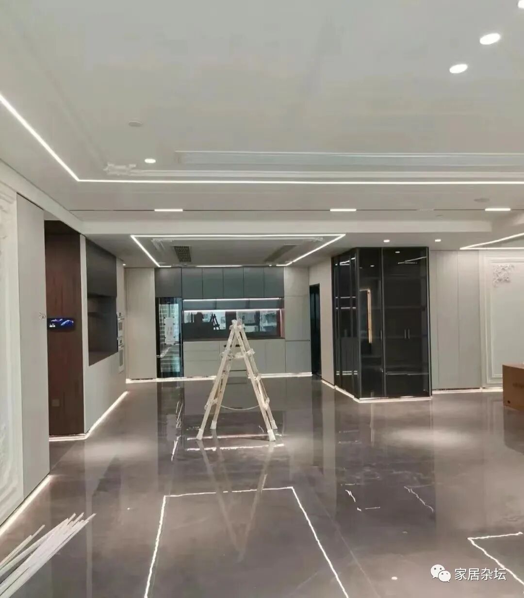 ②、地面显脏。其实这也是无主灯灯光照射的一个特点。无主灯可以将我们的地面照射的特别清晰,如果瓷砖上有灰尘或者是污渍都很清晰。