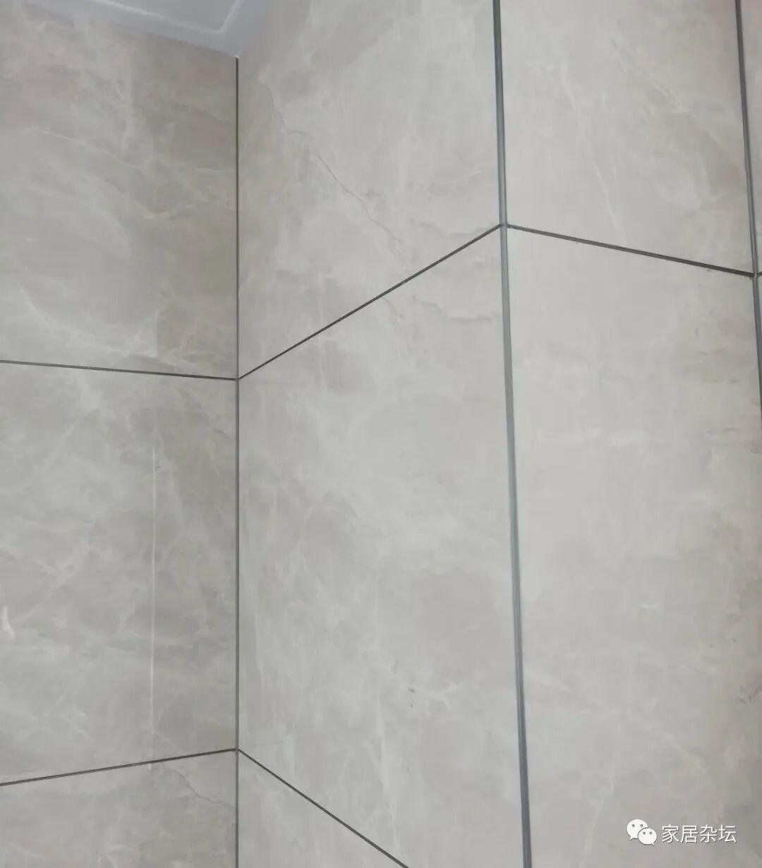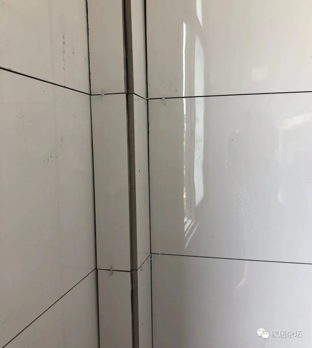 ②、粘贴不好,缝隙大小不一。其实海棠角,一般粘完以后有个2毫米左右的缝隙。做上美缝剂,非常好看。但是,如果缝隙大小不一,就很难看了。