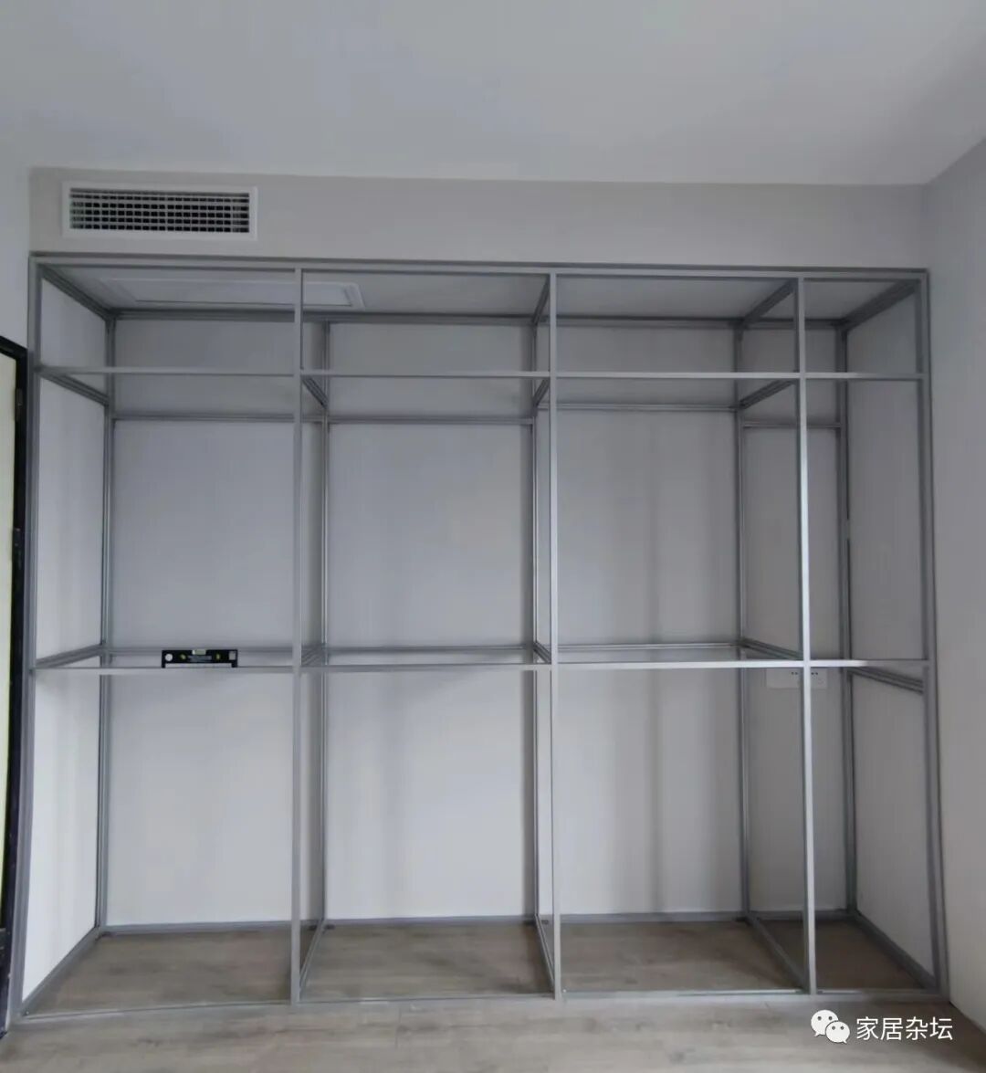 ①、尺寸的把控。第一点容易翻车的,就是尺寸不合理。在安装以后发现,铝合金衣柜与周围有很大的缝隙,甚至现场切割,导致效果很差。