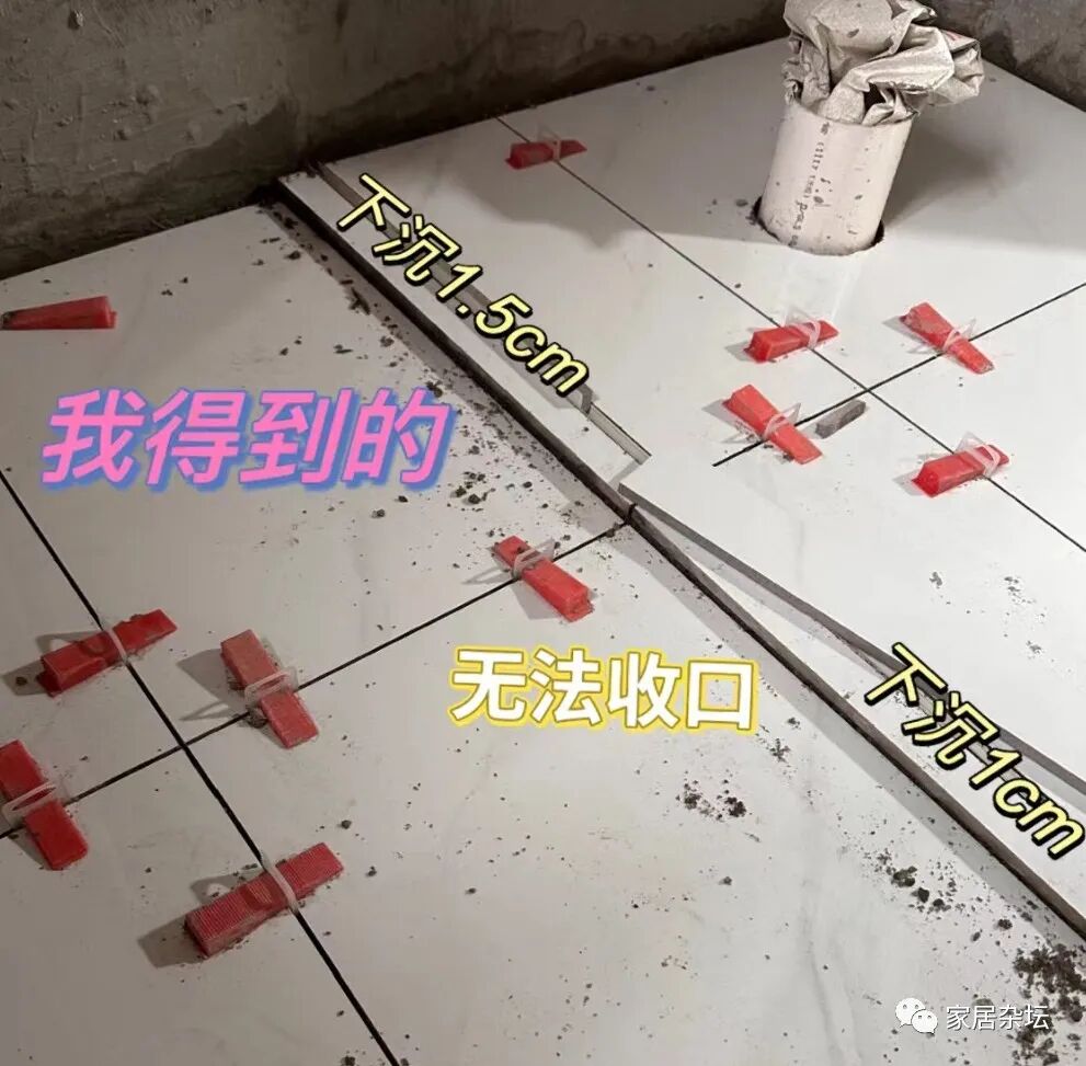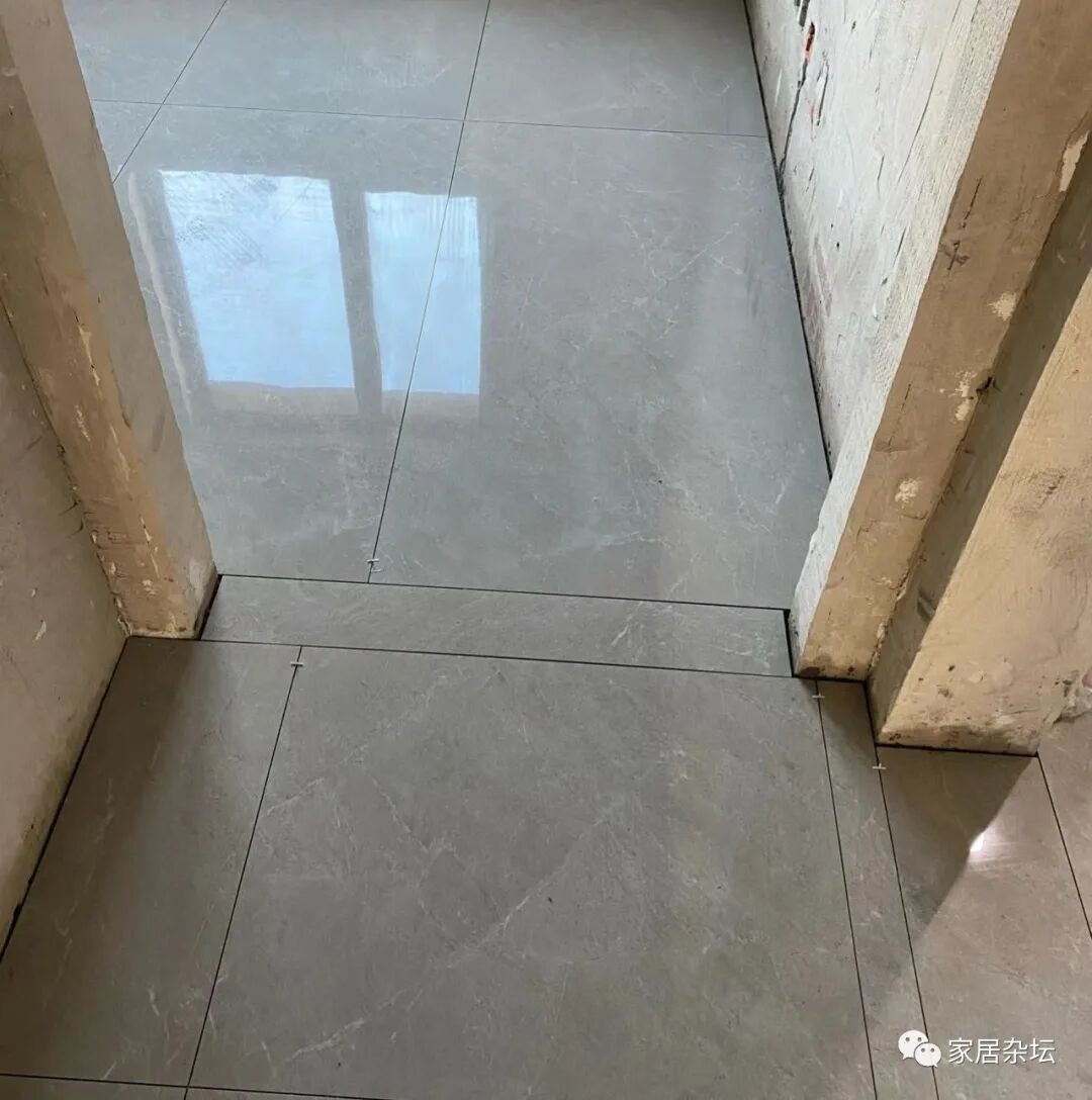 ①、不对缝。放眼望去,会感觉乱七八糟。这是瓷砖通铺没有很好的排版导致,看着非常的凌乱,其实这就是一种非常严重的踩坑。