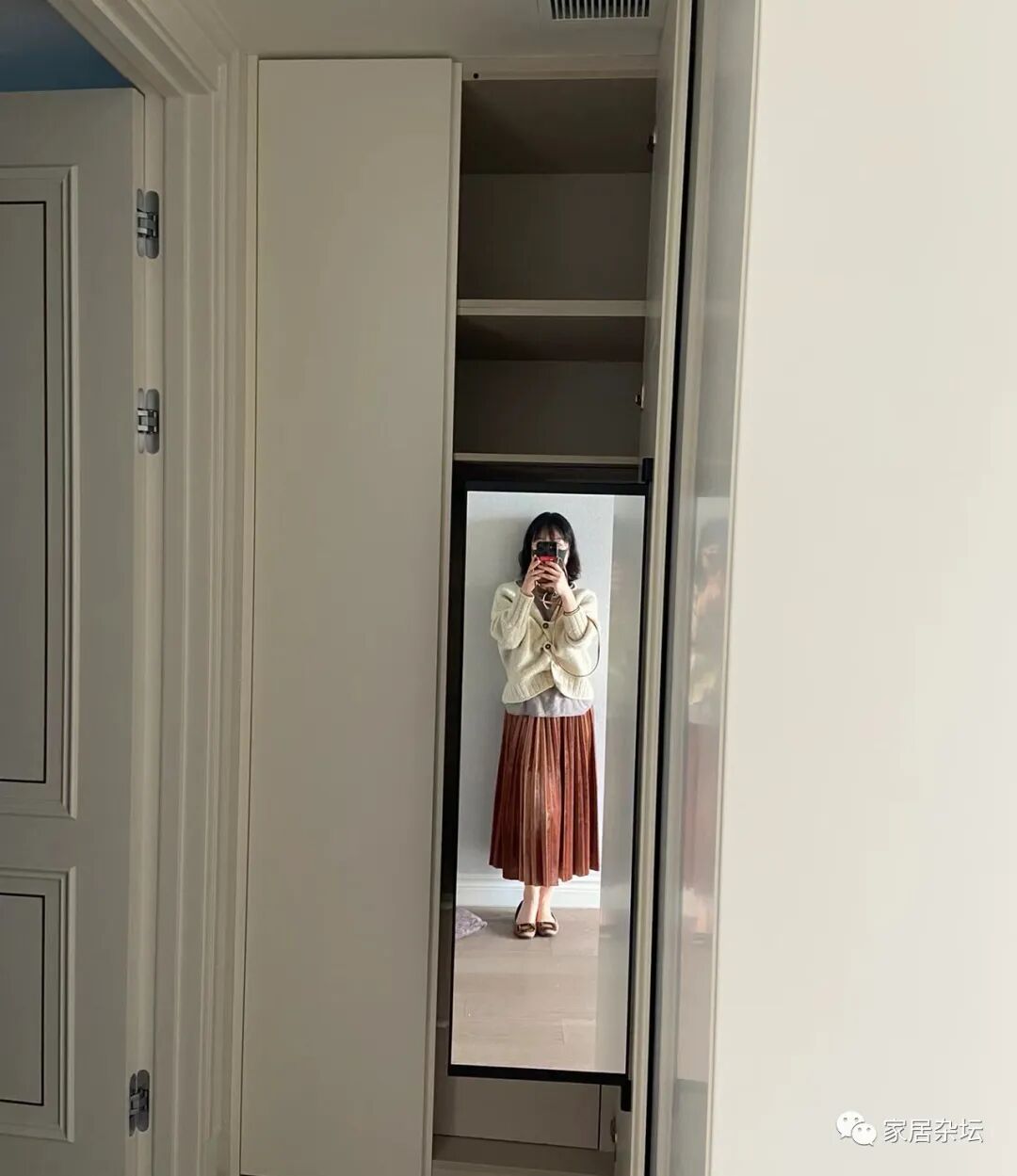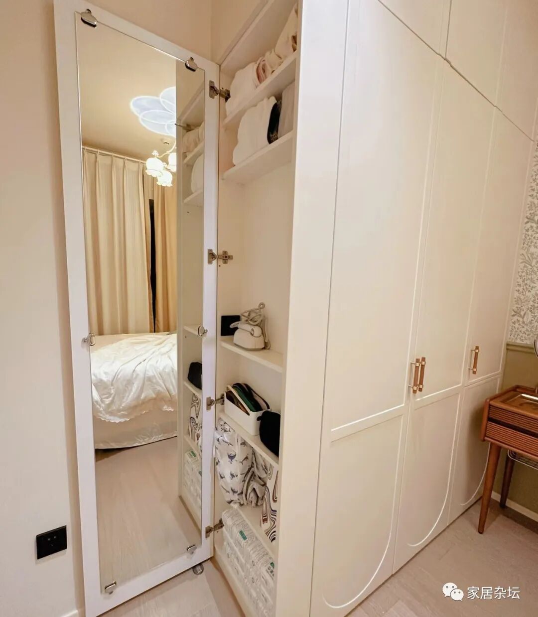 ②、家装中的试衣镜,其实尽量放置在衣帽间。如果没有衣帽间,可以设置在玄关的门后,这样平时就不会看到镜子。