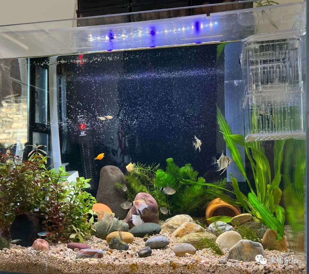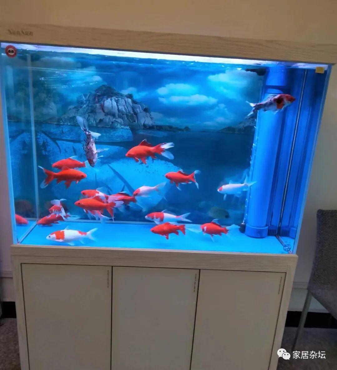 当然了,如果把一个大尺寸的鱼缸摆在客厅里,效果还是确实不错的,能增添客厅的颜值。