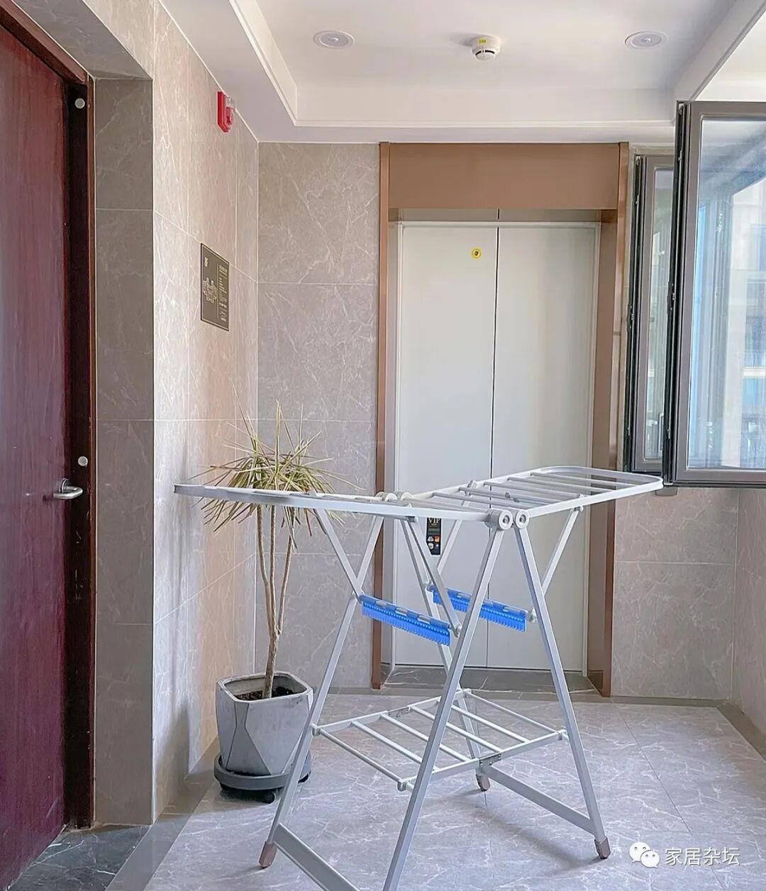 让新装修的家显得很廉价的第7种物件,就是阳台摆放的落地式晾衣架。