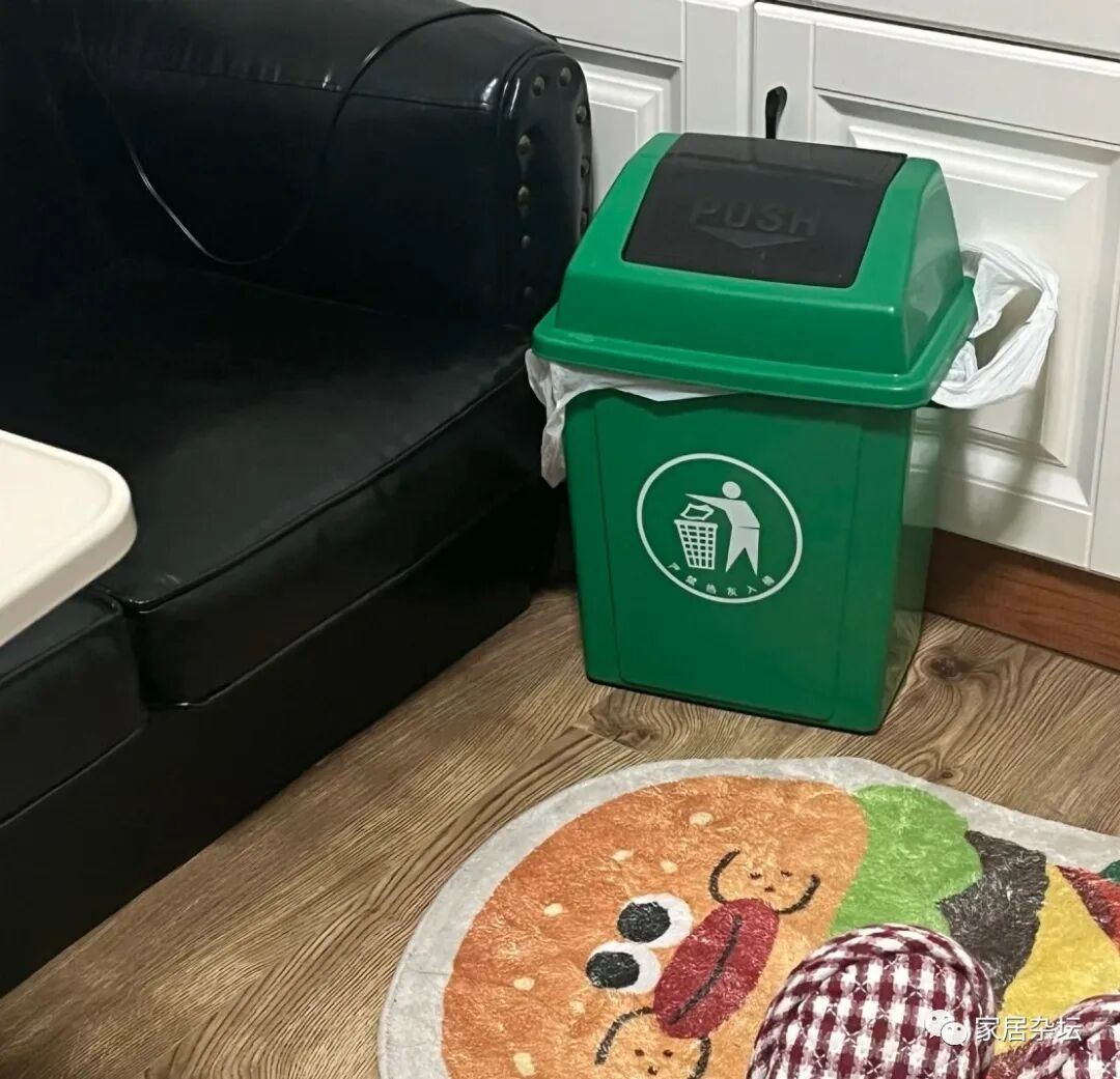这种塑料垃圾桶。往往与高端的装修不是很搭配: