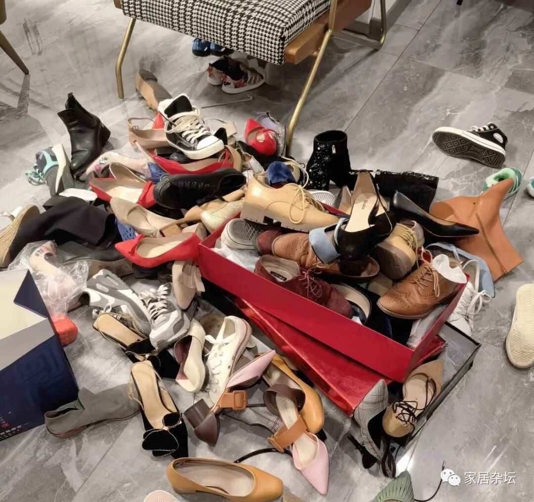 ③、让家里显得特别的乱。有很多朋友是把不穿的鞋堆在了阳台,有的是塞在了鞋柜里,这样就会发现真的特别凌乱,而且不好打扫卫生。