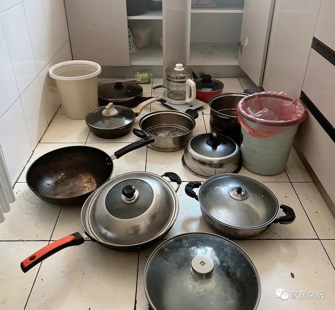 ②、非常占地方。锅的尺寸本来就比较大,一个橱柜里的放不了太多,所以这些旧锅堆在橱柜里,还是非常占地儿的。