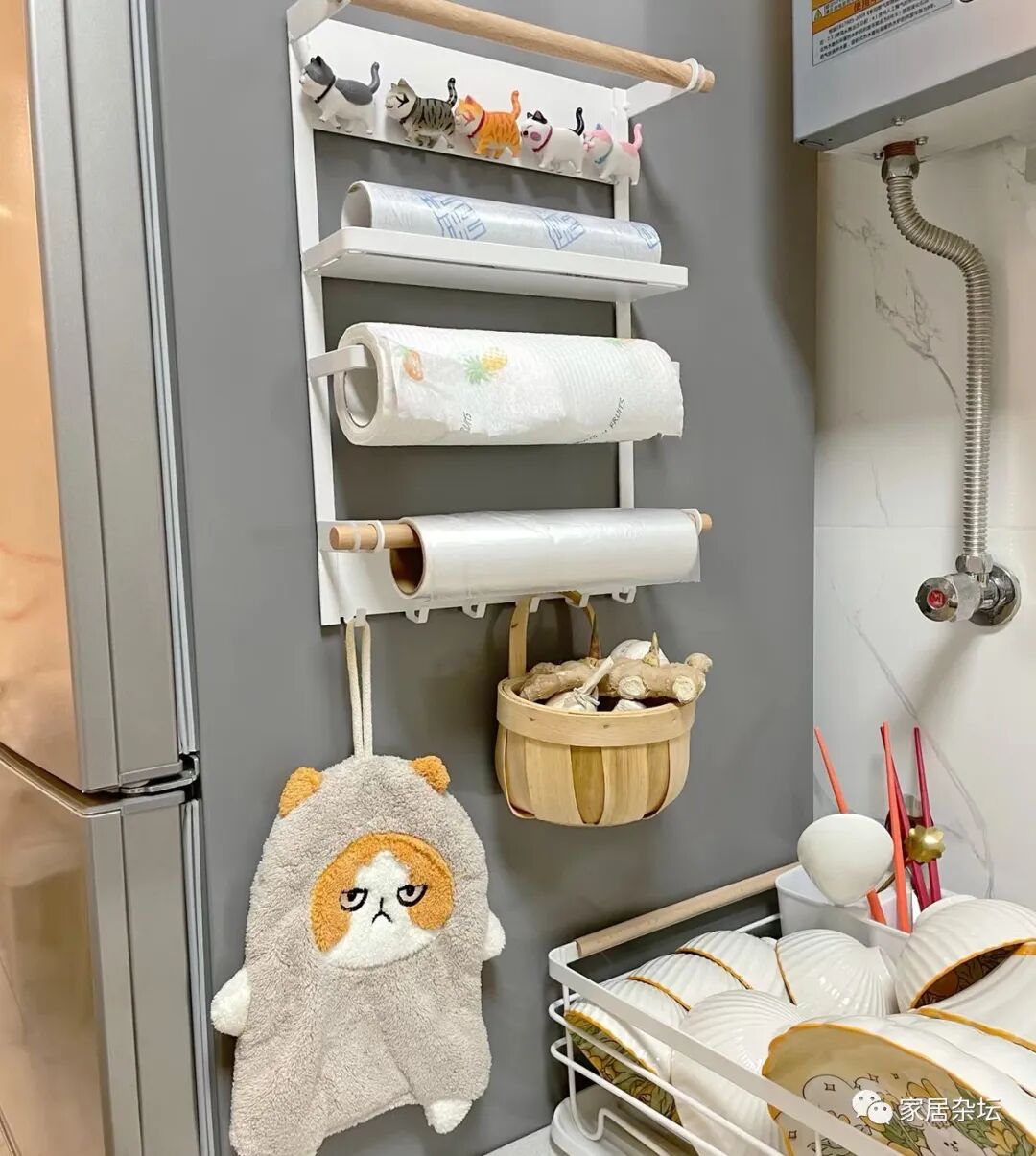 ①、会让厨房整体显得更乱。可以说,这个收纳袋,无论是放在哪个位置,都会导致该空间更凌乱。本来一个干净整洁的厨房,挂个布袋,显得格格不入。