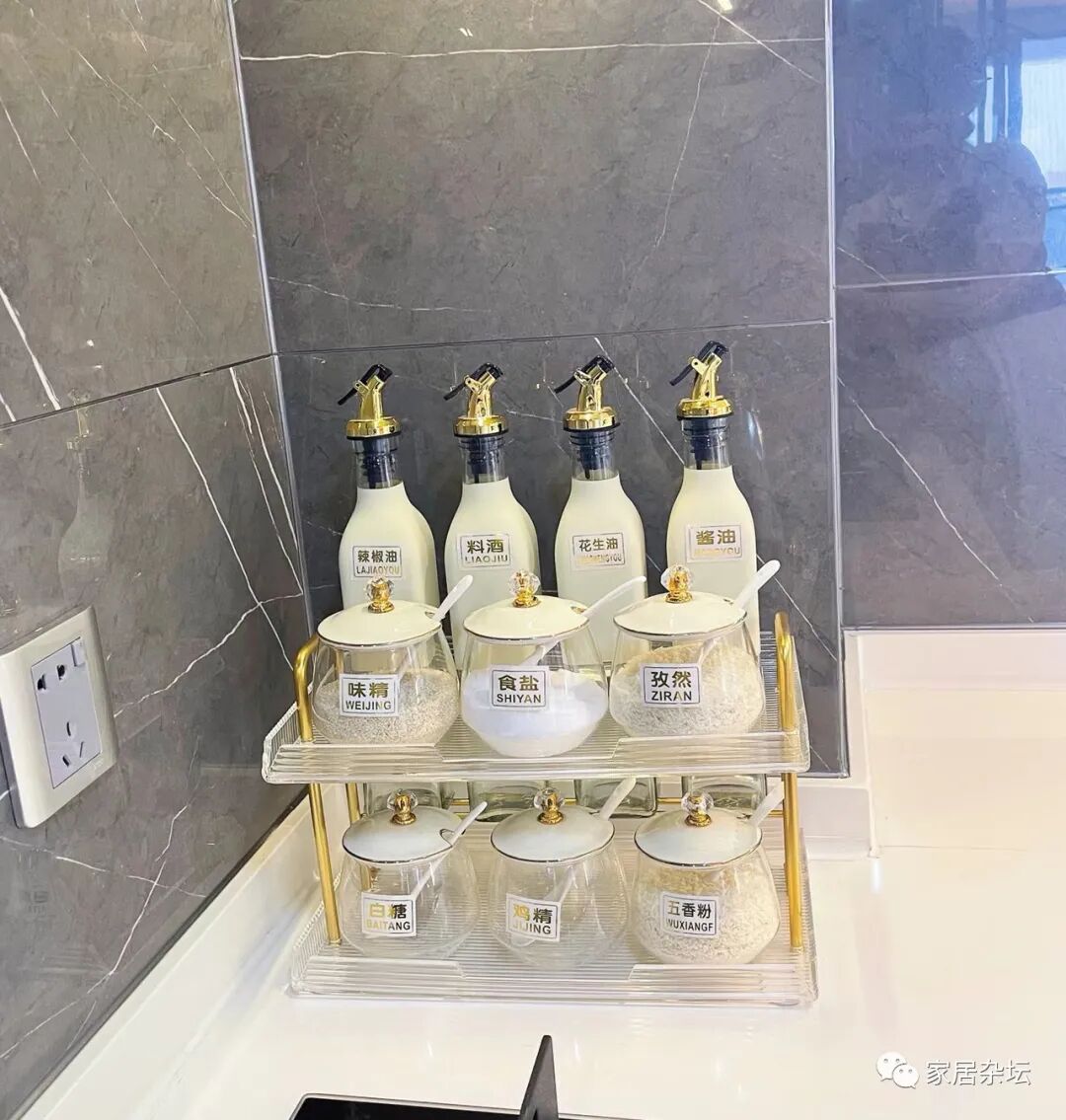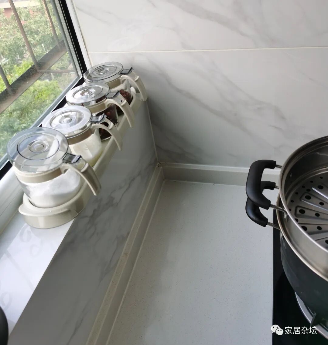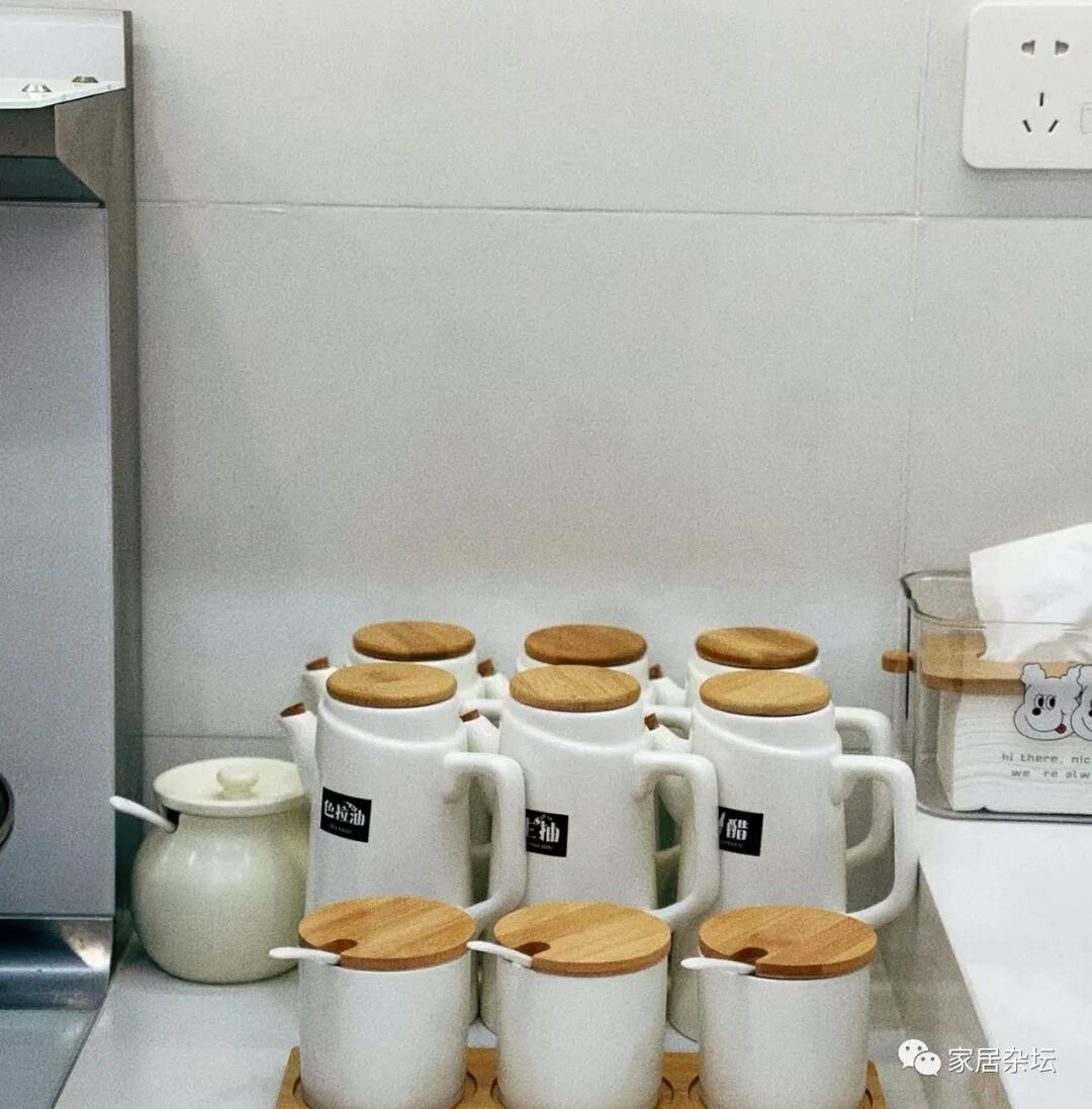 ②、对于厨房,建议大家在台面上尽量靠近操作的地方来放置调料。因为每次使用调料罐,还是很多的,顺手找到才能用着方便。