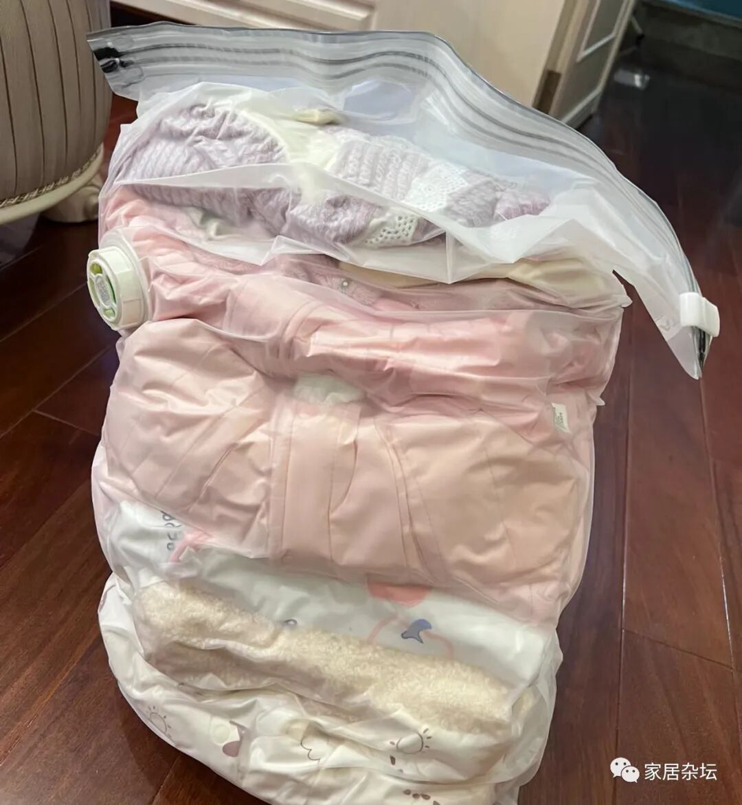 ②、收纳袋,每次都不好用。特别是抽真空的时候,费了半天劲。往往买的质量差的,可能用着用着就坏了,就只能当个塑料袋用。