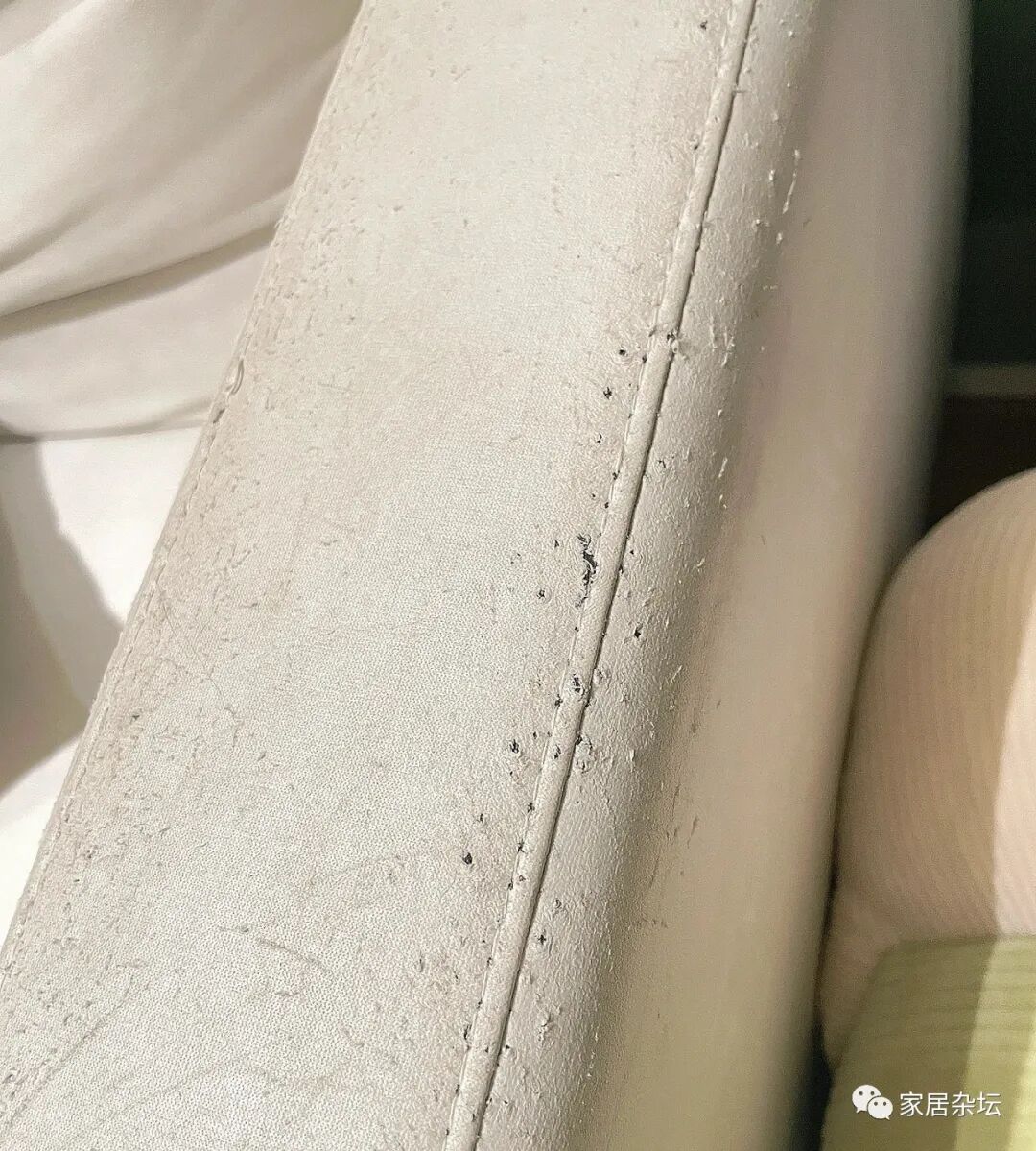 ②、时间长了,出现细小的裂纹,慢慢的也会出现掉渣、掉皮等情况。其实这一点与仿皮沙发的性质非常的类似。