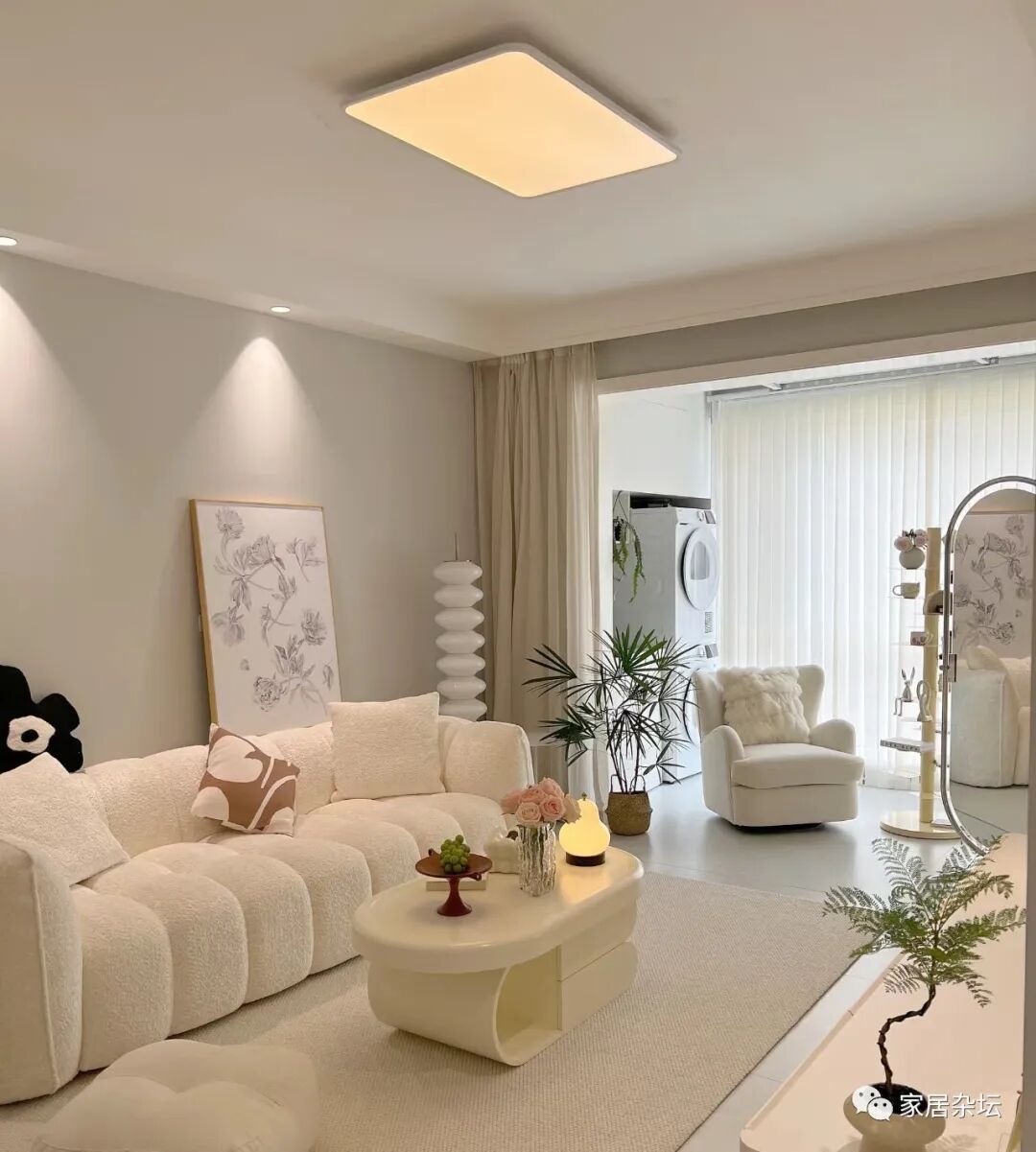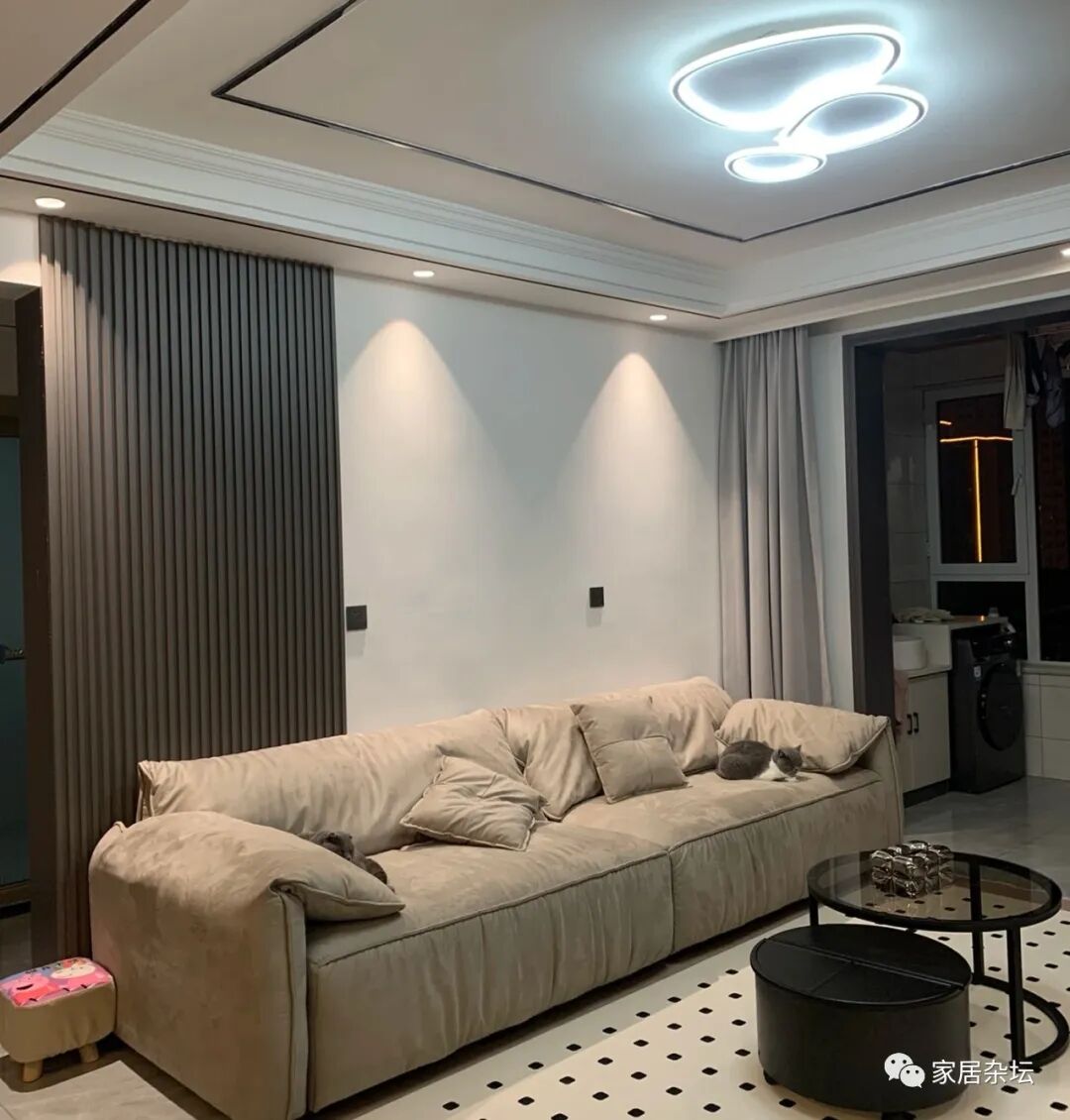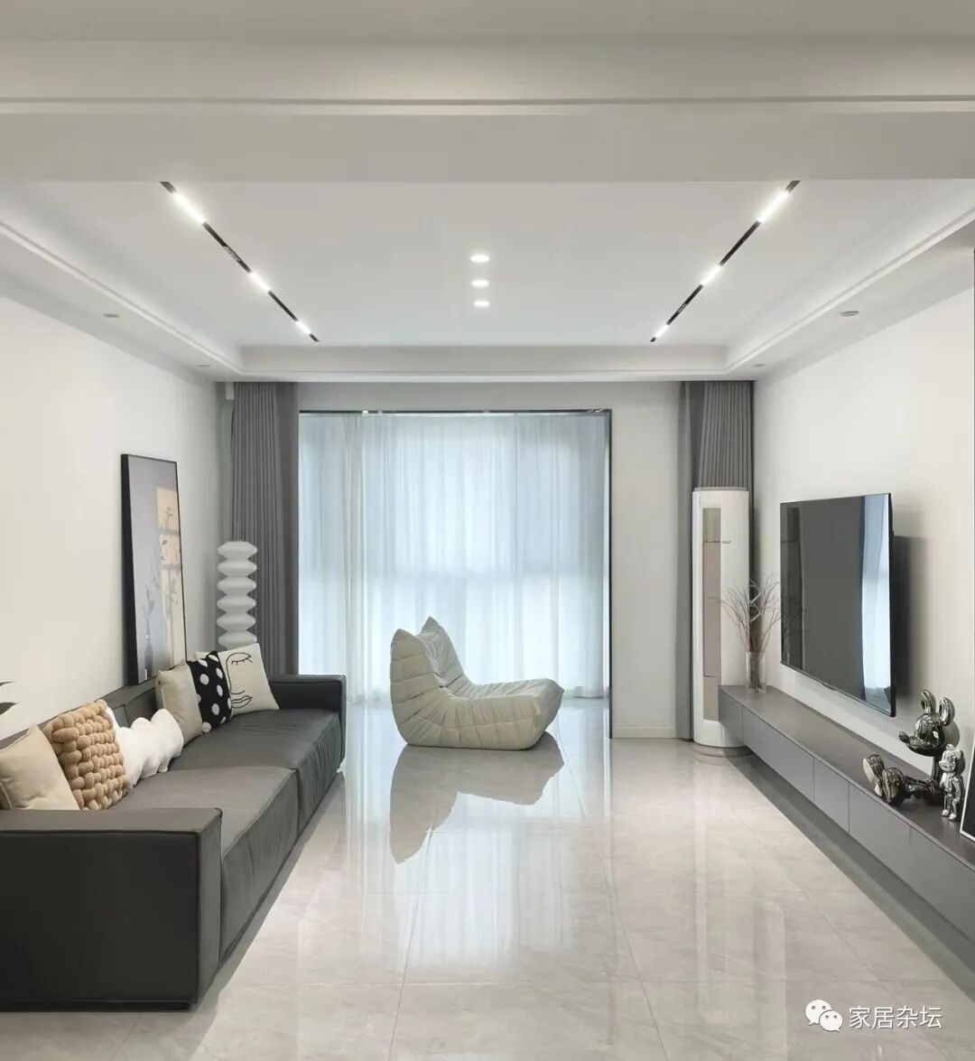①、使用极简的吸顶灯。对于客厅装修,其实安装极简的吸顶灯,效果是非常不错的。如果有边吊,搭配上效果更好。