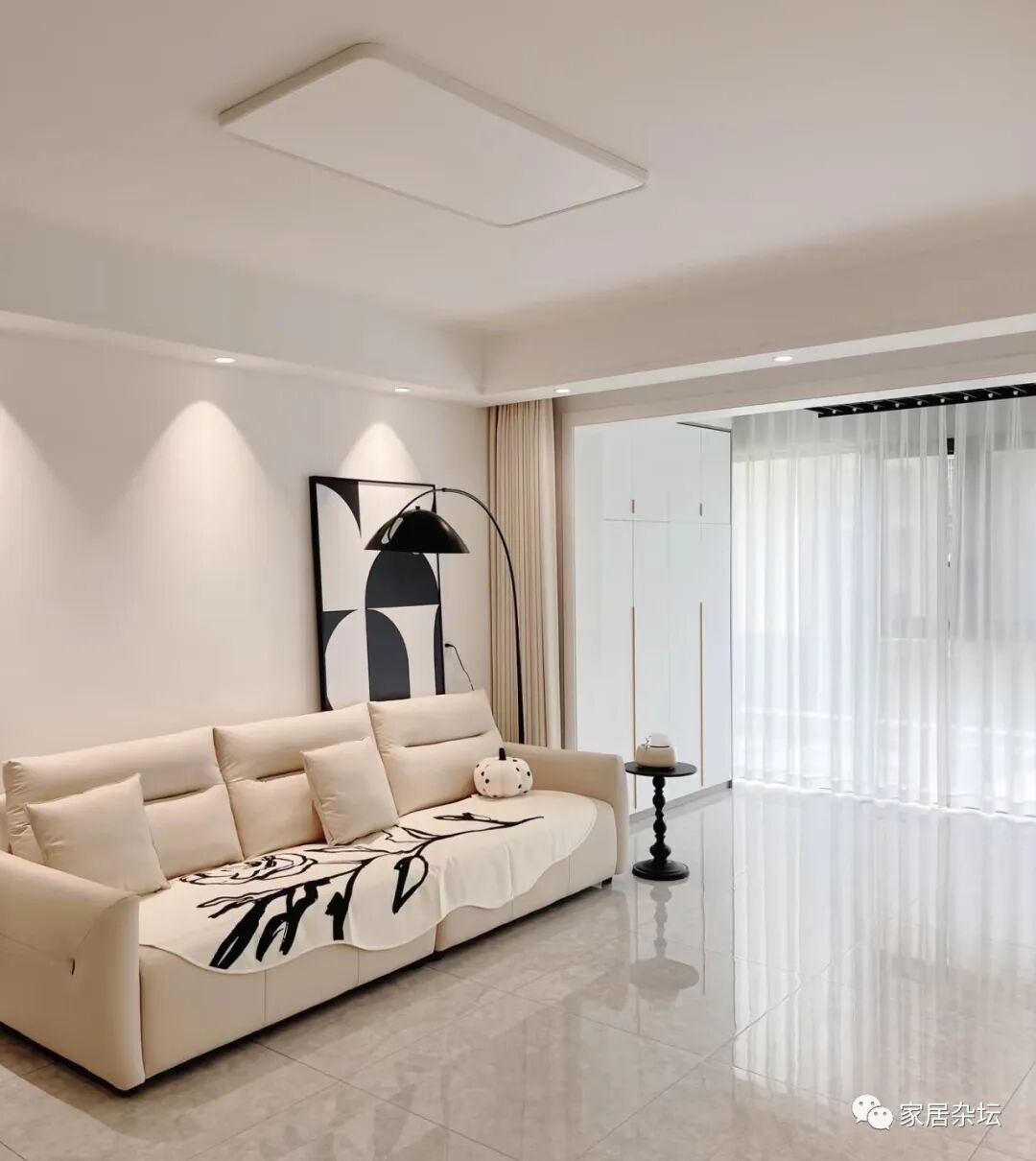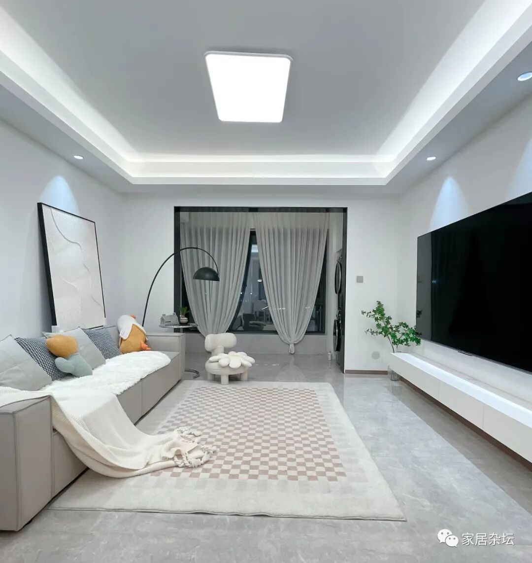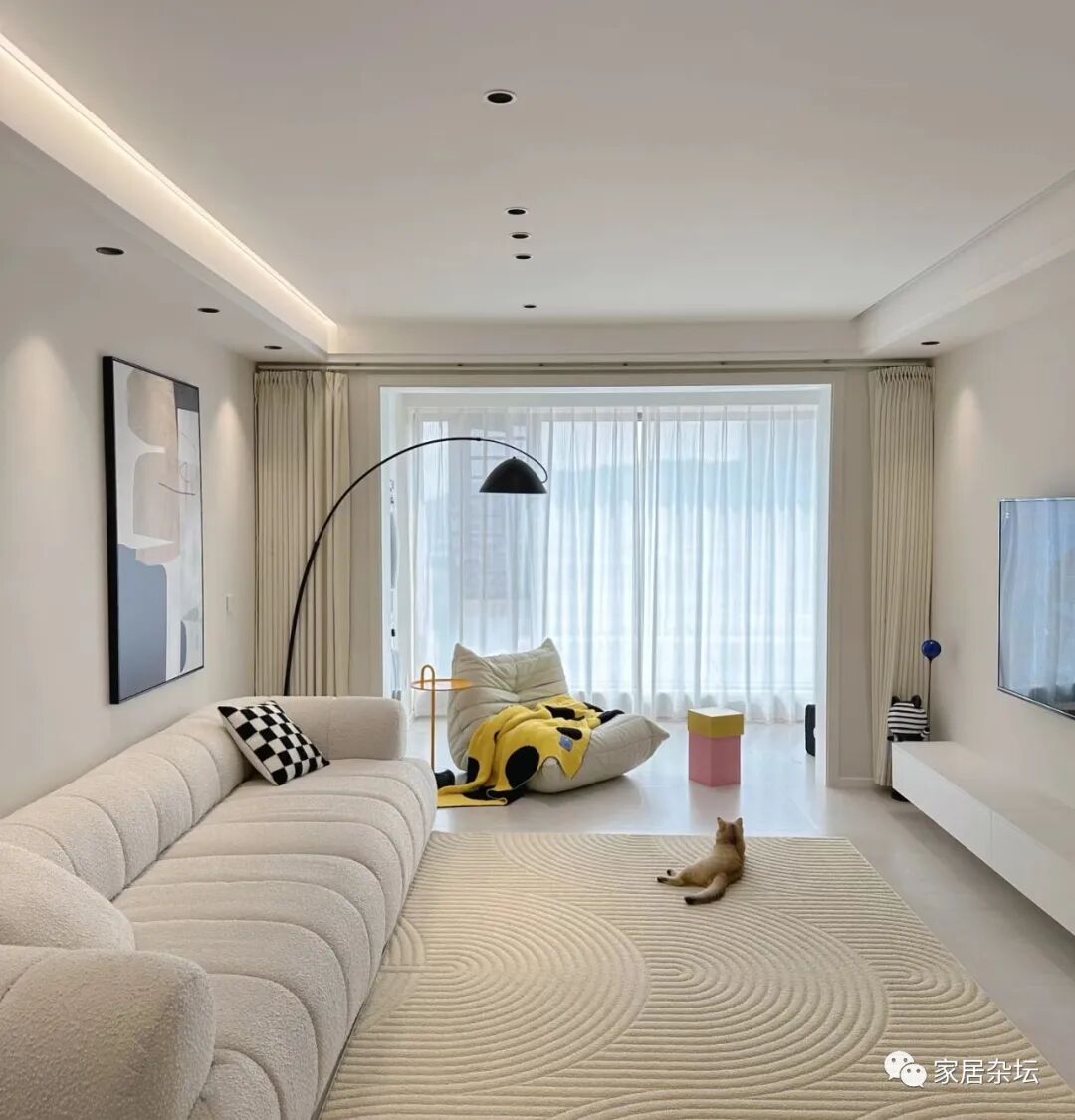 ①、使用极简的吸顶灯。对于客厅装修,其实安装极简的吸顶灯,效果是非常不错的。如果有边吊,搭配上效果更好。