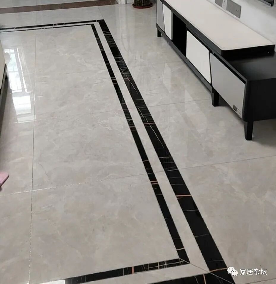 客厅铺波打线,如果从照片上来看的话,效果还可以。但是,真正铺完以后,很多人接受不了。