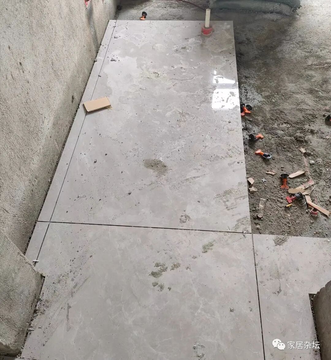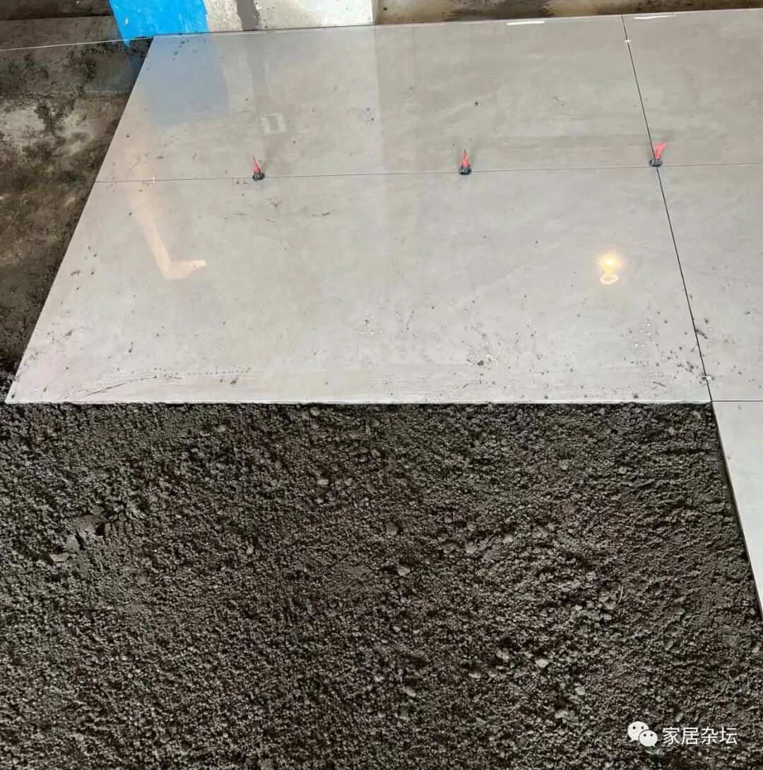 其实对于瓷砖通铺,大家如果在现场盯着的话,就会发现很多瓦工师傅就是直接就从客厅开始铺贴。