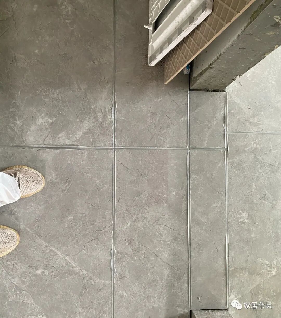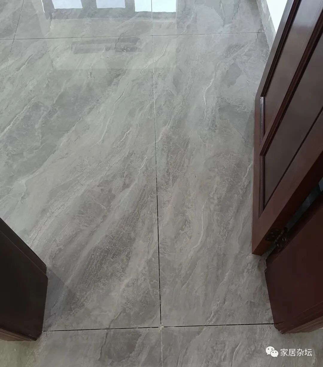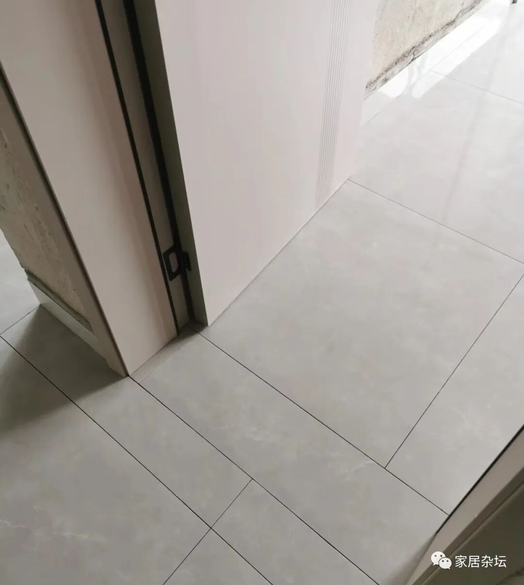 ③、整块瓷砖铺贴在门口,想实现通铺的效果。但是,由于排版的问题,导致这块瓷砖与周围的瓷砖无法实现通缝,显得格格不入。
