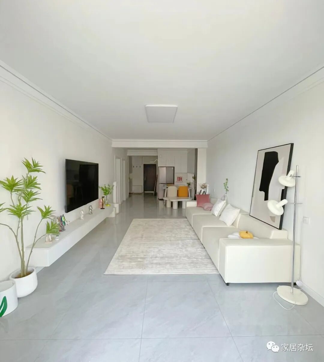 所以,我们在考虑去家务化装修时,那么对于客厅装修,也是建议大家采取瓷砖通铺。