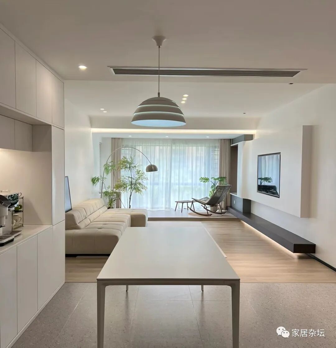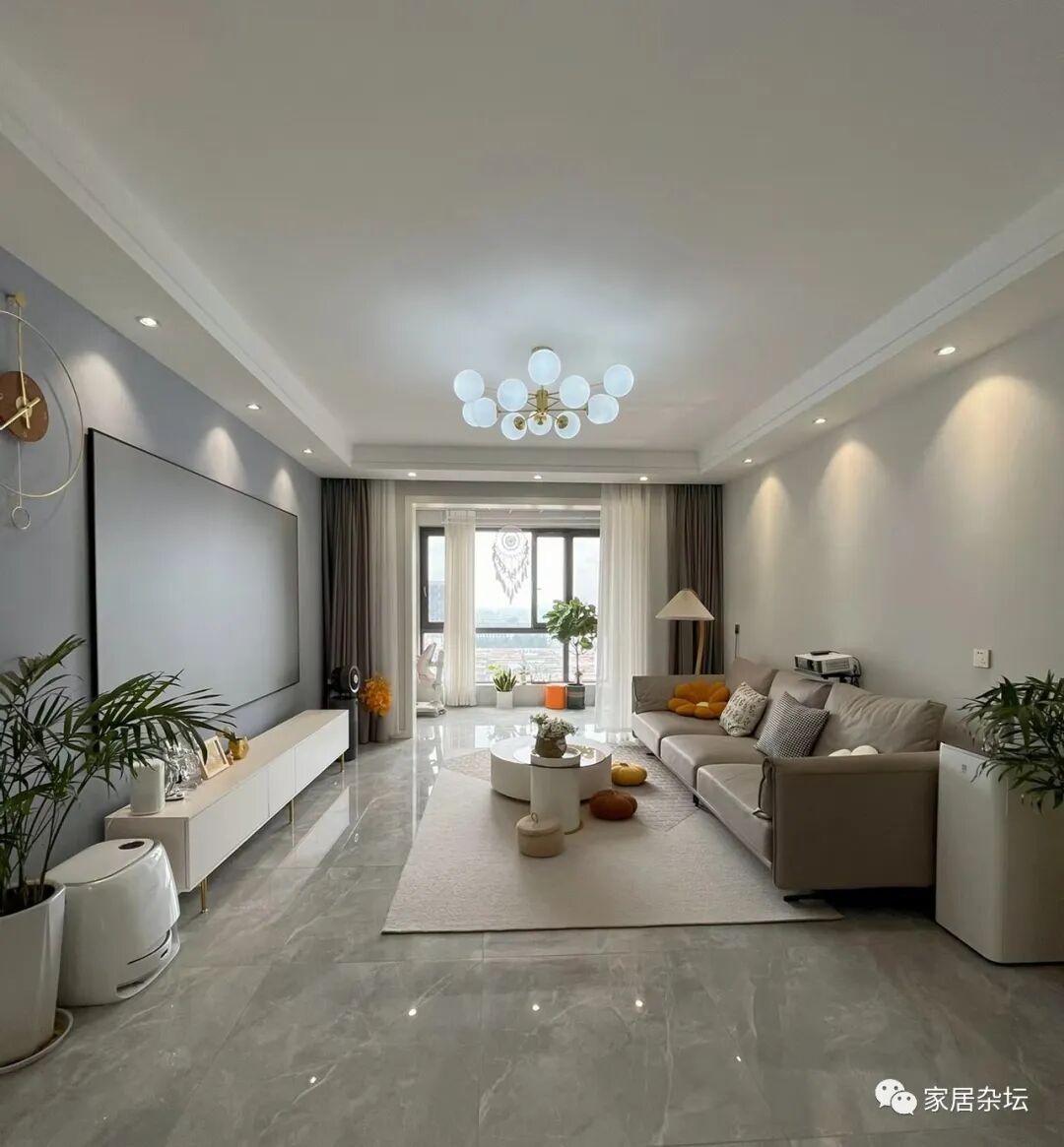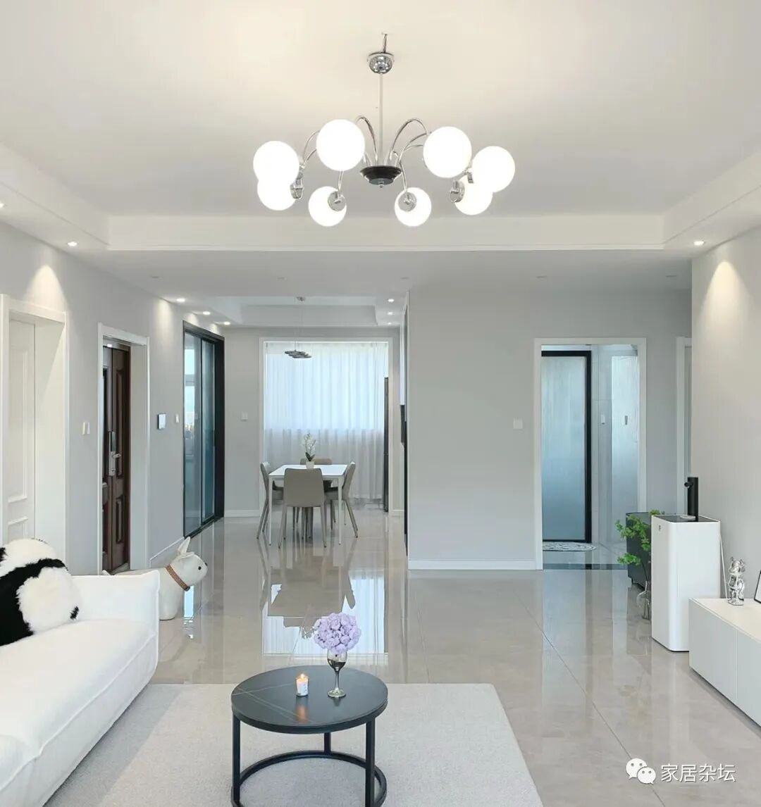 对于去家务化的客厅顶板装修,墙面装修和地面装修,个人给大家推荐以下的比较适合去家务化的方案。