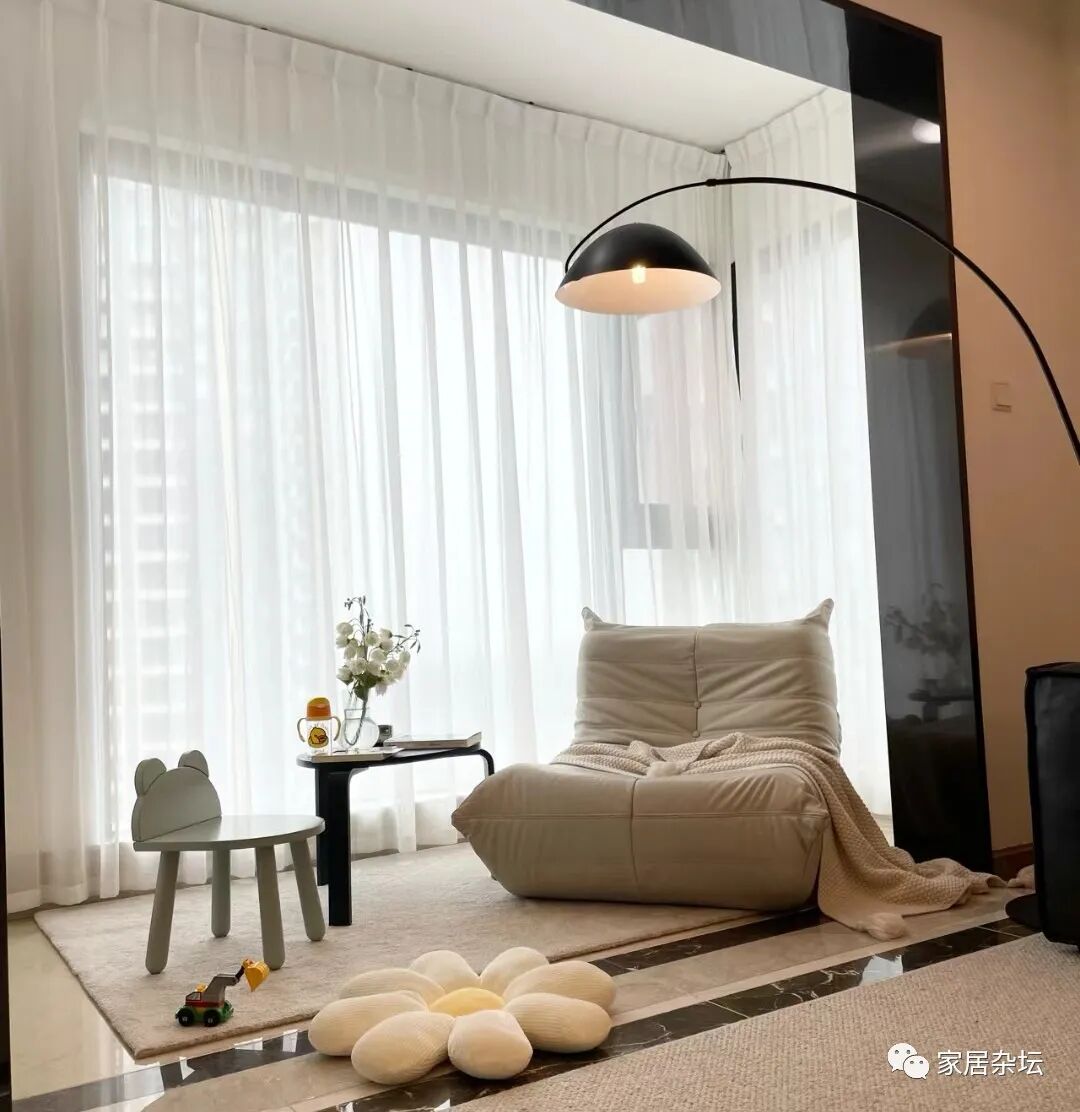 ①、儿童休闲娱乐区。如果我们家里有小孩,那么可以专门给孩子打一个休闲娱乐区。这样让小孩有自己的活动的空间。