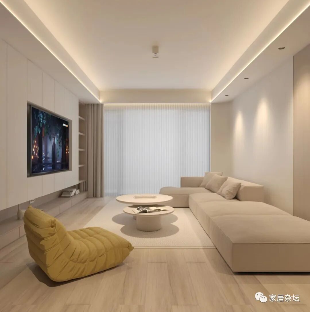 做好去家务化装修,那么客厅的电视背景墙,个人建议大家取消。