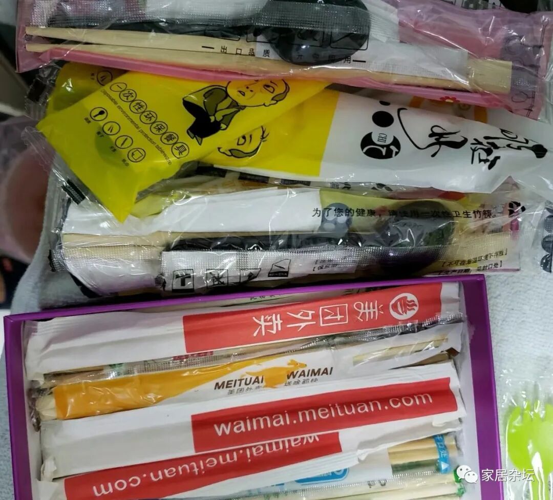 于是,大家会发现一种情况,就是订外卖的时候,大都会多送一些用餐的用品,这些随着出现在我们家里。