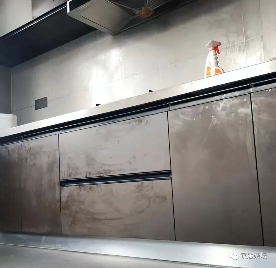 第三种不建议大家再做的厨房装修,就是安装肤感膜柜门。也就是,橱柜的肤感门。